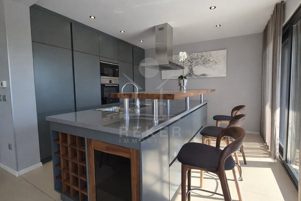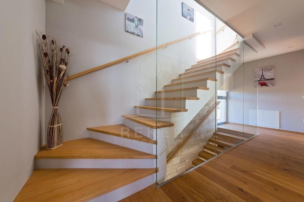 Die moderne Villa erstreckt sich über 2 Etagen und einen Keller, mit einer Wohnfläche von 250 m². Zwei Parkplätze stehen zur Verfügung, und die sichere Einzäunung sowie die grüne Hecke bieten Privatsphäre und Ruhe. Der Außenbereich ist ein wunderbarer Rückzugsort mit überdachter Terrasse, Grill und einem Swimmingpool, der Ihnen pure Entspannung und Urlaubsfeeling bietet.