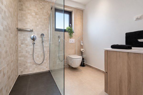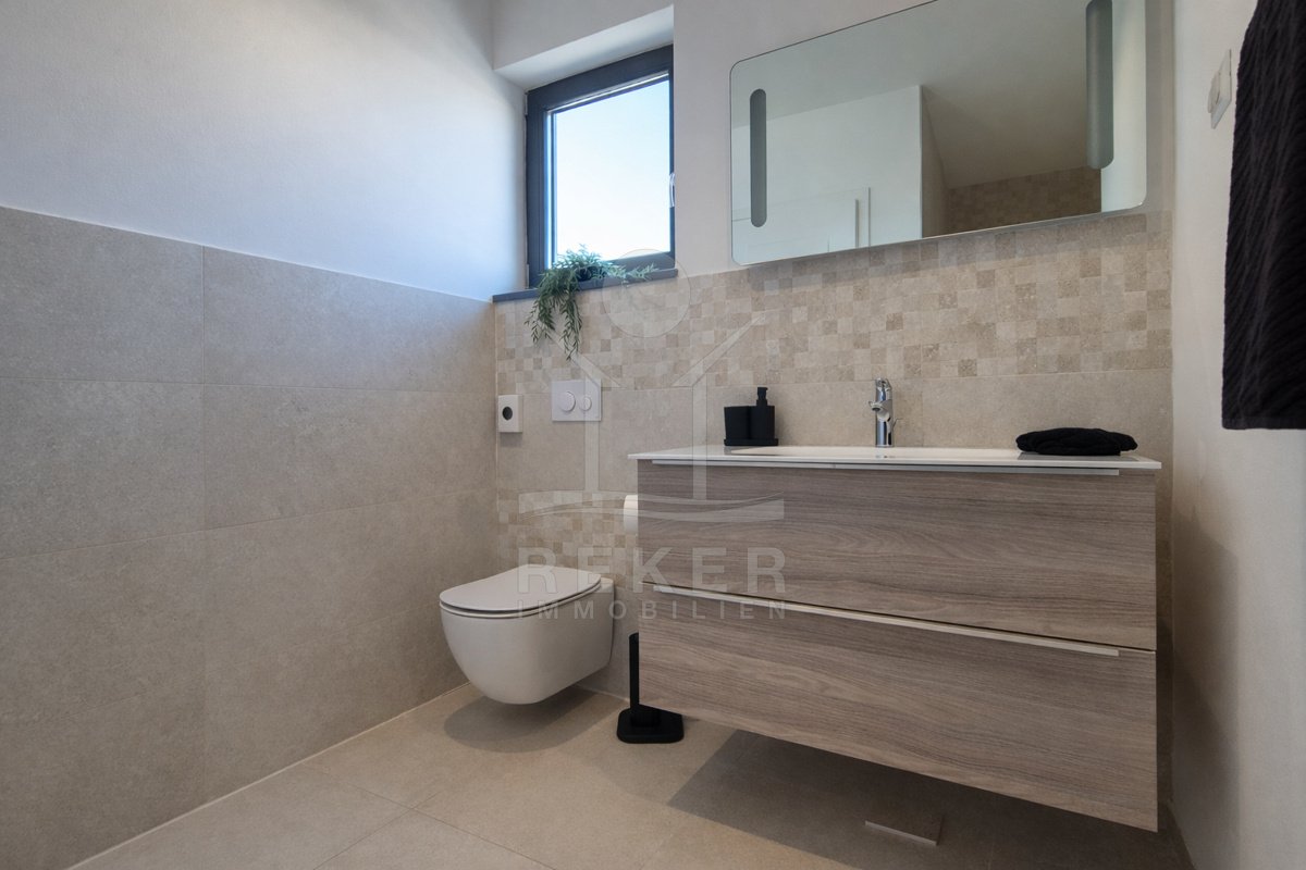 Die moderne Villa befindet sich in einer malerischen Lage eines charmanten Dorfes, umgeben von idyllischer ländlicher Schönheit und üppigem Grün. Der wunderschöne Strand ist nur 500 Meter entfernt, sodass Sie jederzeit einen erfrischenden Tag am Meer verbringen können. Zudem erreichen Sie das lebendige Stadtzentrum von Poreč in etwa 1,5 km, wo eine Vielzahl an Restaurants, Geschäften und kulturellen Attraktionen auf Sie warten.