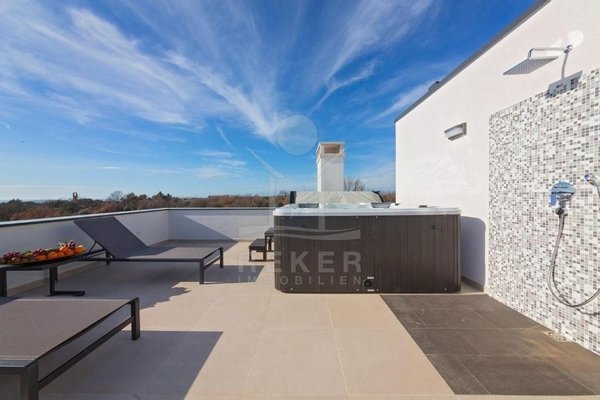 Erleben Sie luxuriöses Wohnen in dieser exquisiten Villa in Poreč, die modernes Design und hochwertige Ausstattung perfekt vereint. Mit einem einladenden Pool und einem erstklassigen Spa-Bereich werden Wellness und Erholung hier großgeschrieben. Die großzügige Dachterrasse, ausgestattet mit einem Whirlpool und einem herrlichem Meerblick, bietet Ihnen einen idealen Ort, um den Sonnenuntergang über der Adria zu genießen. Diese Villa ist nicht nur ein Zuhause, sondern ein Rückzugsort, der Ihnen eine ganz neue Dimension des Genusses eröffnet. Entdecken Sie den Charme und die Vielfalt Kroatiens in dieser traumhaften Immobilie!