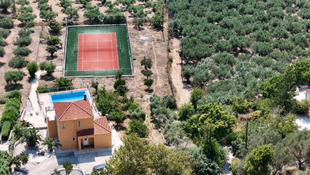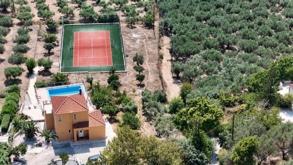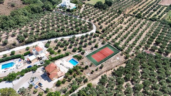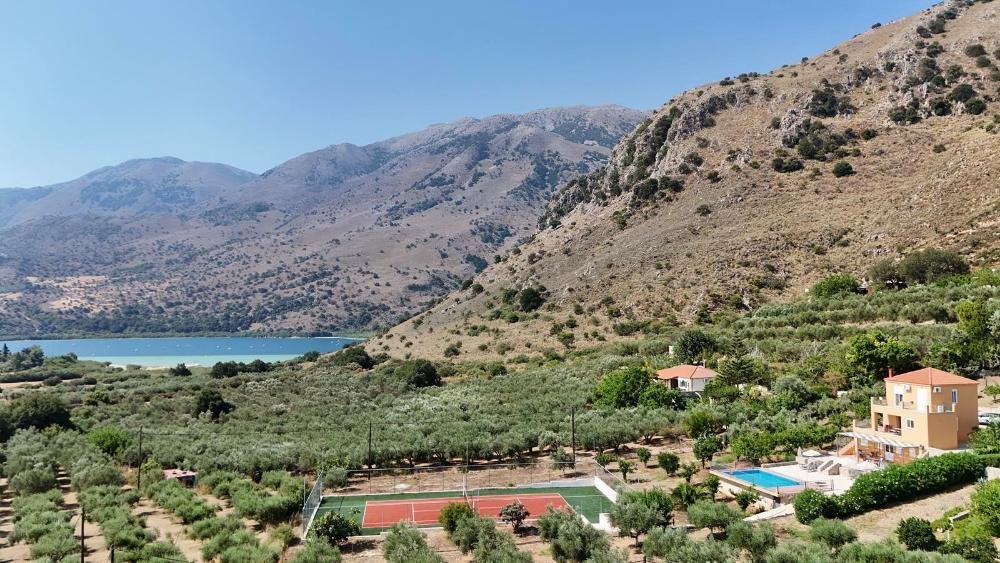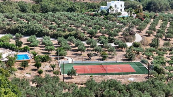 Kreta, Kournas: Spektakuläre Villa mit Tennisplatz nahe des Kournas-Sees zu verkaufen