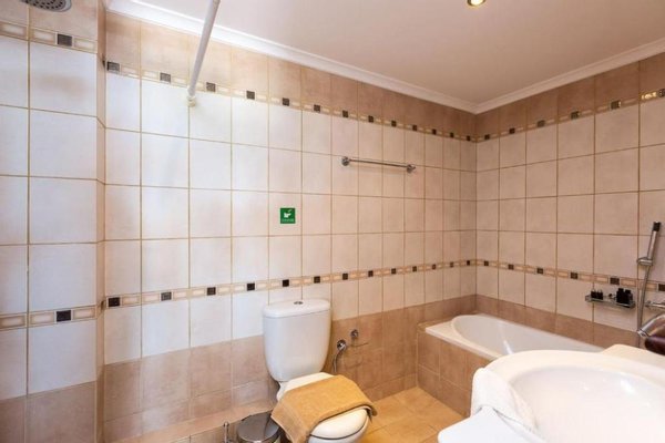 Im Außenbereich gibt es einen Tennisplatz, einen angelegten Garten mit vielen Bäumen, zahlreichen Sitzbereichen und einem Swimmingpool, wo Sie die Sonne genießen können.