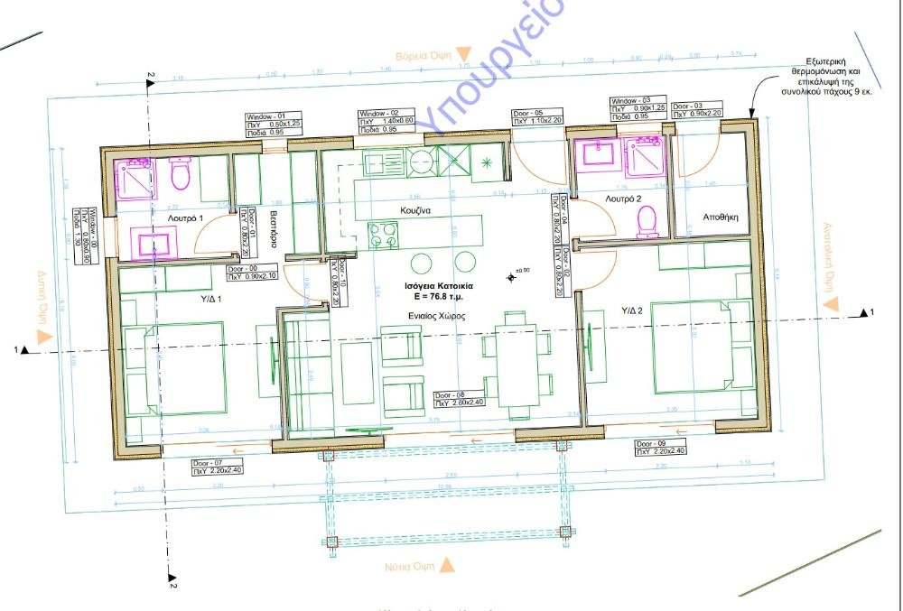Das Projekt in Klima, Südkreta, bietet ein charmantes und schlichtes Haus mit zwei Schlafzimmern und zwei Badezimmern sowie atemberaubendem Meerblick. Diese Residenz umfasst eine offene Küche und einen Wohnbereich, ein Hauptschlafzimmer mit offenem Kleiderschrank und eigenem Bad sowie ein zweites Schlafzimmer, ein Gästebad und einen Lagerraum mit externem Zugang. Draußen finden Sie einen schönen Garten, einen Parkplatz, einen Swimmingpool, einen Grillbereich und eine einladende Pergola! Die Baugenehmigung wurde vor kurzem erteilt und der Bau ist derzeit im Gange. Die Fertigstellung ist in 5-6 Monaten geplant. Klima bietet eine einzigartige Lage, nur 5 Minuten vom Strand und eine kurze Fahrt von Tymbaki entfernt, wo Sie eine Vielzahl von Geschäften und Annehmlichkeiten finden. Hinter dem Dorf thront Kretas höchster Berg und bietet eine alternative Attraktion zur Küstenlinie! Dieses Haus ist ideal für diejenigen, die sich in einem ruhigen, traditionellen griechischen Dorf zur Ruhe setzen möchten, aber es passt auch perfekt zu einer kleinen Familie. Dank seiner Nähe zum Meer und beliebten Zielen wie Agia Galini und Matala hat es ein hervorragendes Potenzial als Mietobjekt! Diese Residenz wird bezugsfertig übergeben und verfügt über ein Gebläsekonvektor-Heiz- und Kühlsystem, das von einer Midea- oder Gree-Wärmepumpe angetrieben wird. Die Küche ist ein Design von Scavolini und maßgefertigte Kleiderschränke und Innentüren werden von erfahrenen Tischlern aus der Umgebung gefertigt. Es verfügt außerdem über eine Solaranlage zur Warmwasserbereitung und einen 1.000-Liter-Wasserbehälter mit einer elektrischen Pumpe. Die Außentüren und Fenster bestehen aus Europa-Aluminiumprofilen, genauer gesagt aus den Serien EOS-60 und EOS-47. Sie sind in verschiedenen Farben erhältlich, ganz nach Ihrem Geschmack. Zur Isolierung sind die Außenwände 23 cm dick und mit 7 cm Wärmedämmung von Knauf verkleidet, ergänzt durch Knauf-Steinwolle im Kern. Die Innenwände sind zur zusätzlichen Wärme- und Schalldämmung ebenfalls mit Steinwolle ausgestattet. Bitte beachten Sie, dass folgende Gegenstände NICHT im Angebot enthalten sind: - Möbel - Haushaltsgeräte - Beleuchtungskörper - Anschlüsse an die öffentliche Strom- und Wasserversorgung. Befindet sich das Projekt noch in der Anfangsphase, haben Kunden die Möglichkeit, Materialien für die Inneneinrichtung, darunter Fliesen, Badezimmerausstattung und Wandfarben auszuwählen.