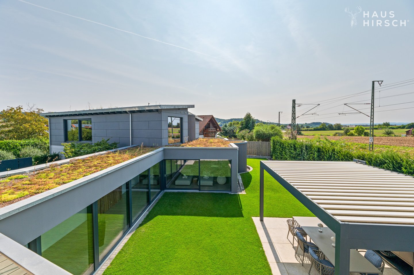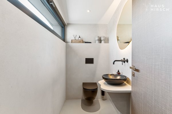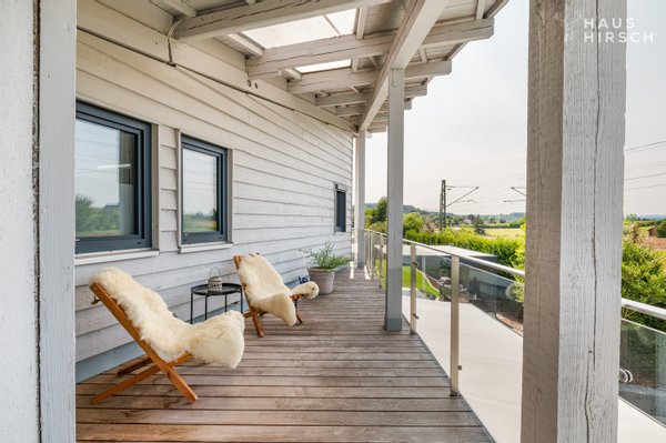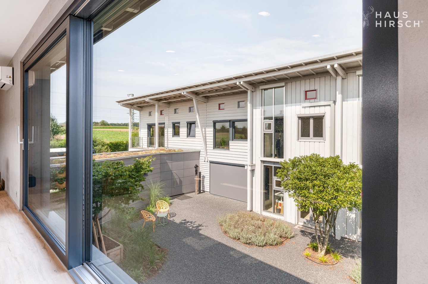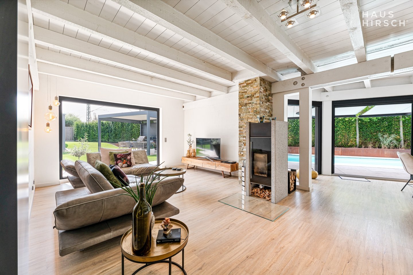 Genießen Sie die Komfortausstattung des Anwesens, wie die automatische Regulierung der Heizungsanlage, die Steuerung über die Gira-App, die hochwertigen ZIP-Screens, die Panoramafenster im Neubau und die durchdachte Beleuchtung im gesamten Außenbereich.