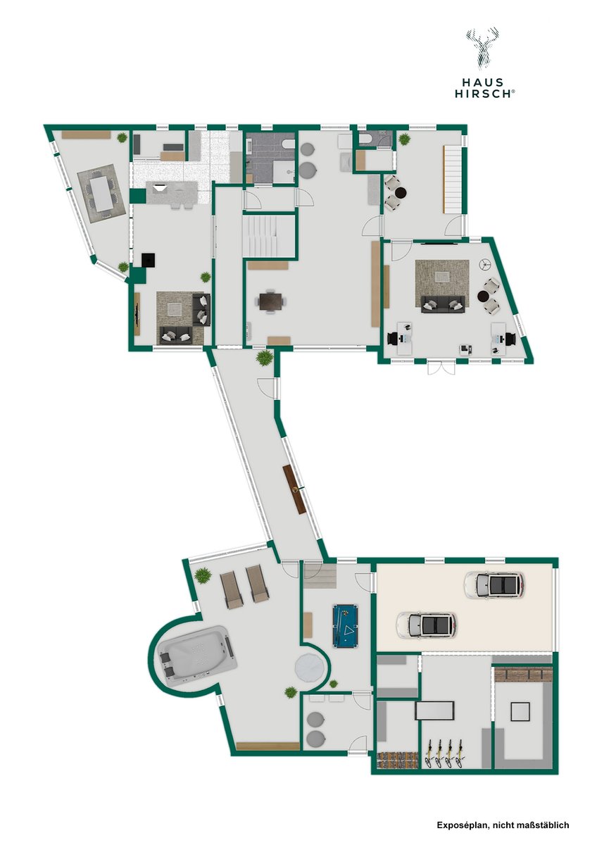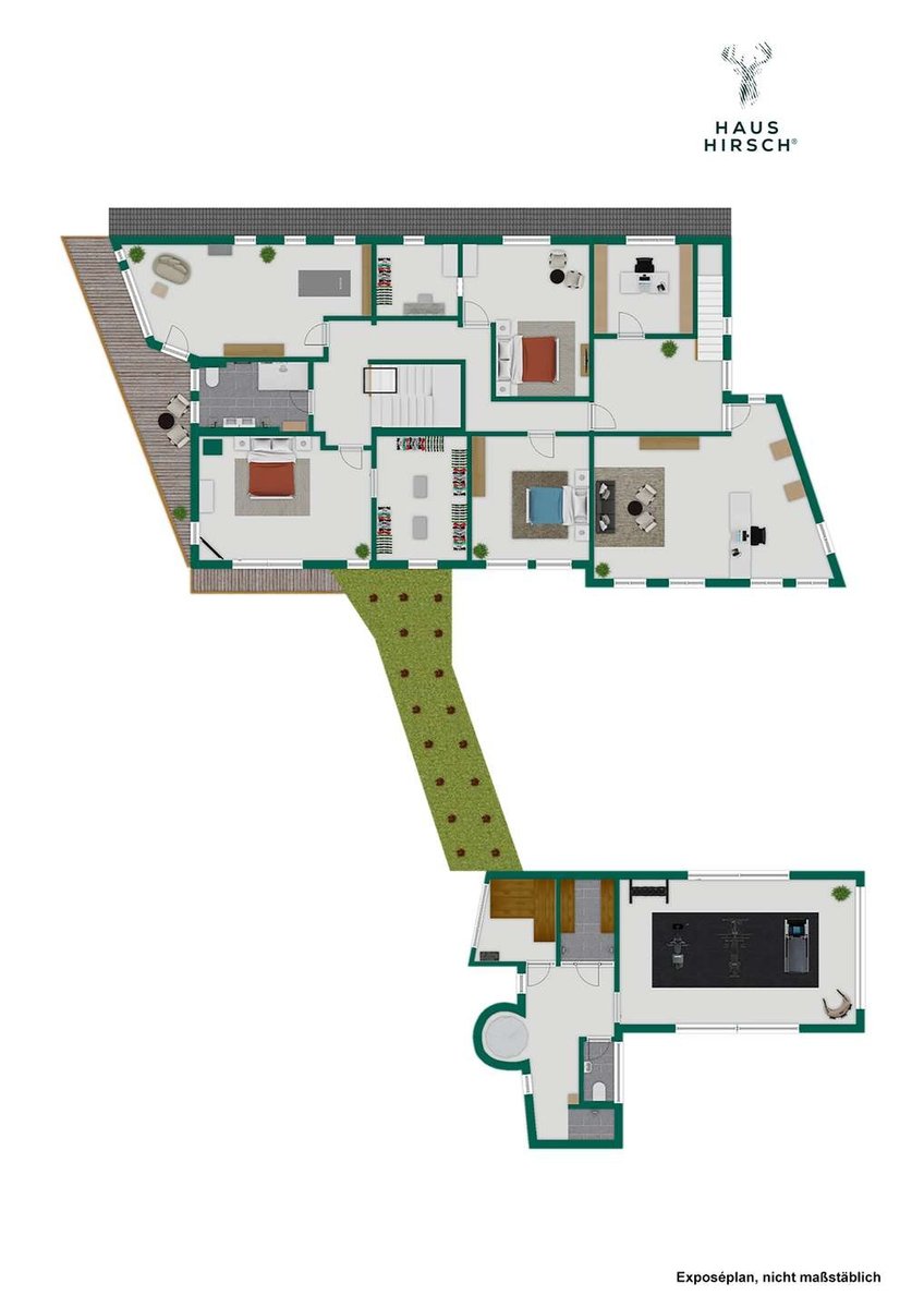 willkommen in Ihrem zukünftigen Zuhause und Geschäftshaus! Betreten Sie das luxuriöse Anwesen und lassen Sie sich von den vielfältigen Möglichkeiten begeistern. Von der Bürofläche mit ca. 200 Quadratmetern bis zur Wohnfläche von ebenfalls ca. 380