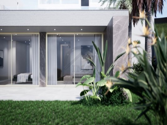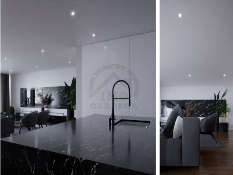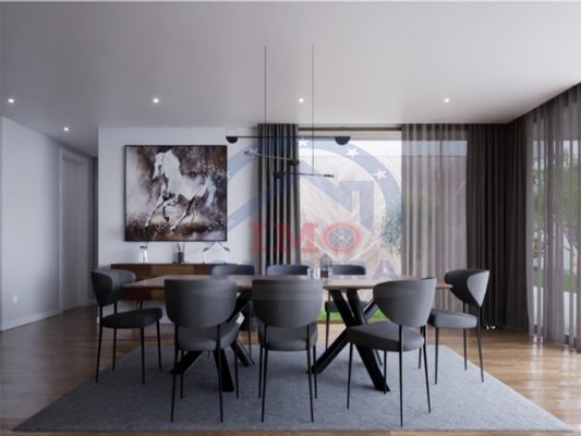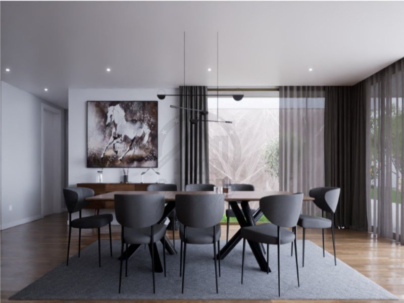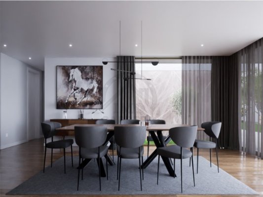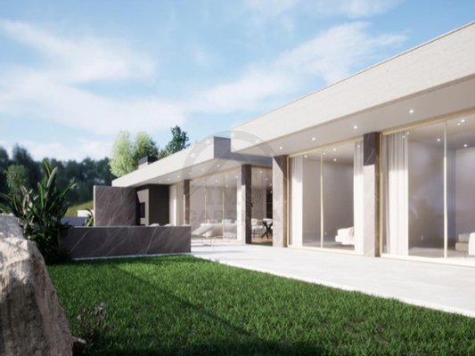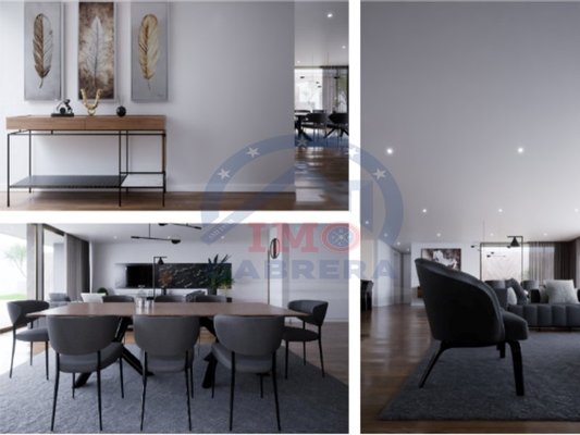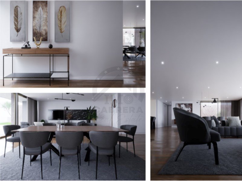 Es besteht aus einer Eingangshalle, einer "weißen" Küche mit Silestone-Platte und -Wänden, komplett ausgestattet, mit Insel und im Open Space, einem großen Ess- und Wohnzimmer (fast 90 m2) mit schöner Aussicht und Zugang zum Garten und Pool, einem sozialen Badezimmer, im ersten Stock befindet sich der Schlafbereich, 3 Suiten, mit Balkonen mit 10 m2, mit Glasschutz. Master Suite mit 30 m2 mit begehbarem Kleiderschrank.