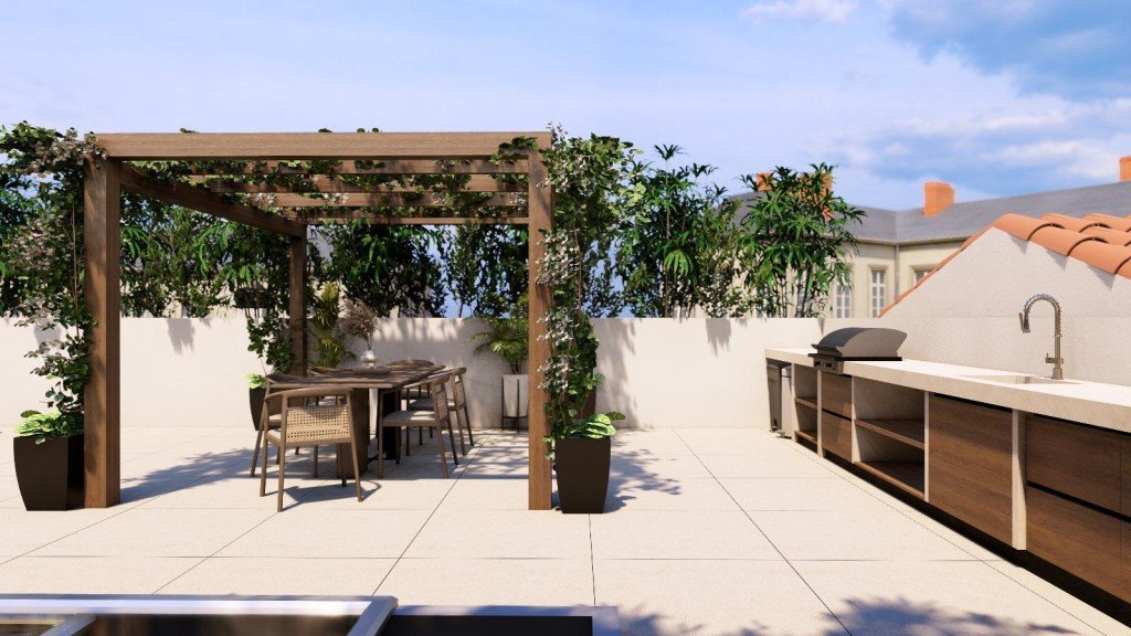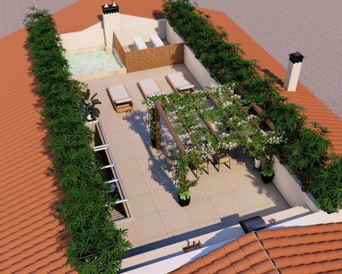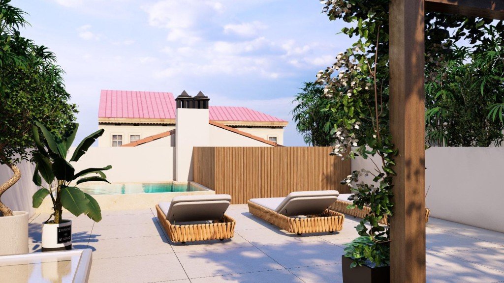 Die weitläufige Dachterrasse auf der dritten Ebene ist ein wahres Highlight. Sie bietet ausreichend Platz zum Entspannen, Sonnenbaden oder gesellige Abende unter freiem Himmel. Mit der geplanten Bepflanzung entsteht hier eine grüne Oase mitten im pulsierenden Santa Catalina – ein Rückzugsort mit urbanem Flair.