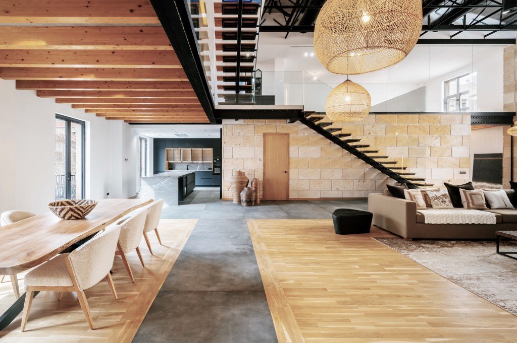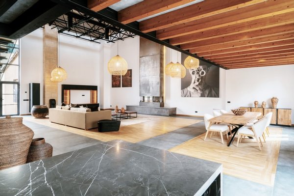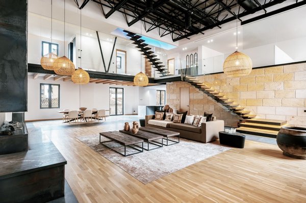 Dieses Loft-Penthouse steht dem New Yorker Stil in nichts nach. Der offene Grundriss, die unglaublich hohen Decken und die als Akzente eingefügten Natursteinwände erinnern an die typischen Lofts in Manhattan. Der Charme des historischen Kinos von