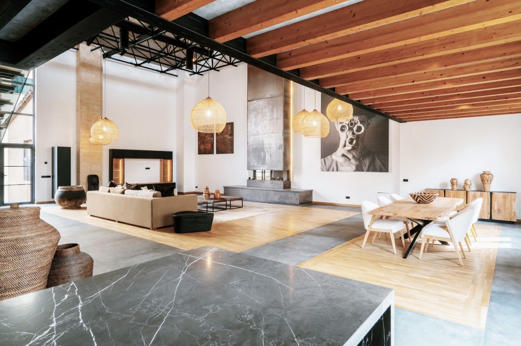 Dieses Loft-Penthouse steht dem New Yorker Stil in nichts nach. Der offene Grundriss, die unglaublich hohen Decken und die als Akzente eingefügten Natursteinwände erinnern an die typischen Lofts in Manhattan. Der Charme des historischen Kinos von Santa Catalina gepaart mit modernem Design und luxuriösen Ausstattungsdetails machen diese Wohnung zu einem echten Hingucker.
