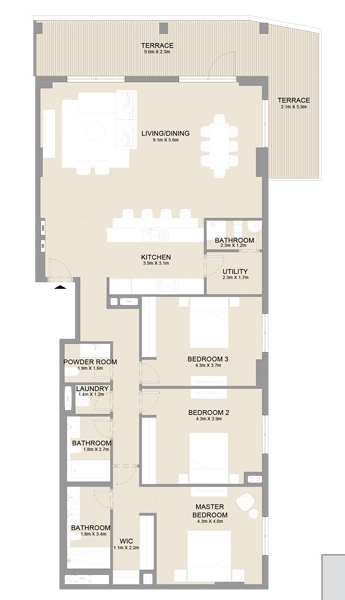 Luxuriöse 3-Zimmer-Wohnung mit direktem Strandzugang.