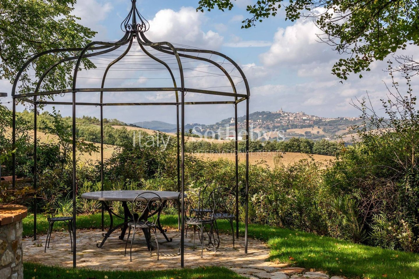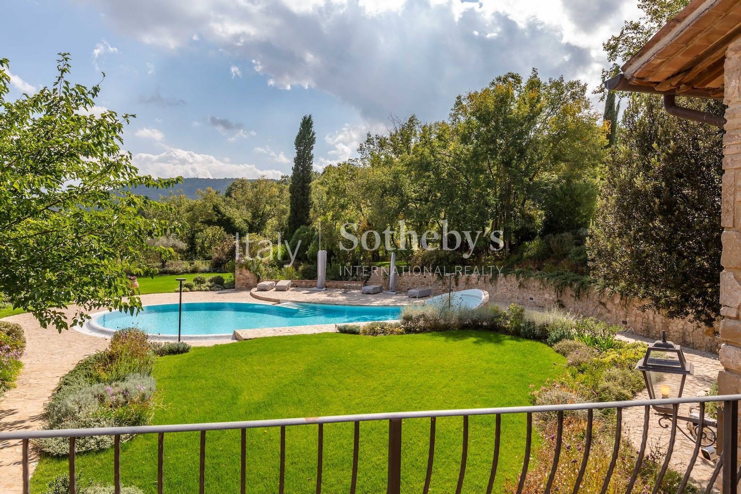 Im Außenbereich bietet die Villa auf der einen Seite einen herrlichen Blick auf Todi und zwei Wohnbereiche im Freien, die sich perfekt für Aperitifs oder Mittagessen eignen. Auf der anderen Seite befindet sich ein großer beheizter Pool mit Wasserfall. Jedes Detail - von der Farbwahl bis hin zu den Materialien - wurde mit größter Sorgfalt ausgewählt, um der Villa authentischen Charme zu verleihen.