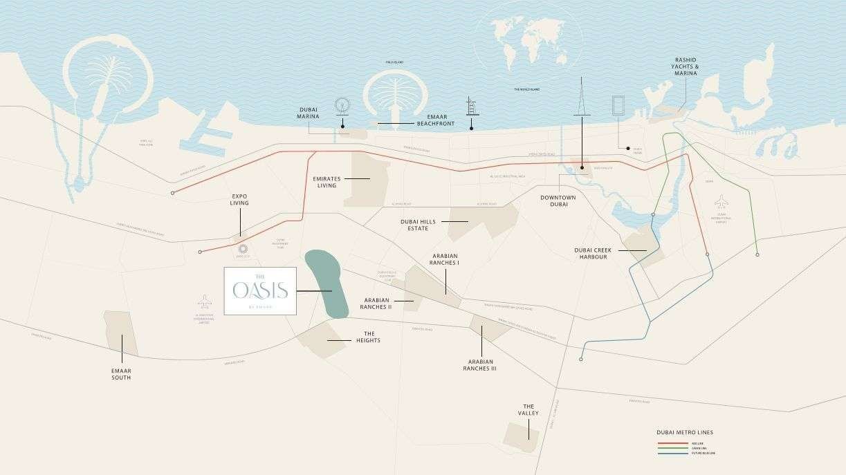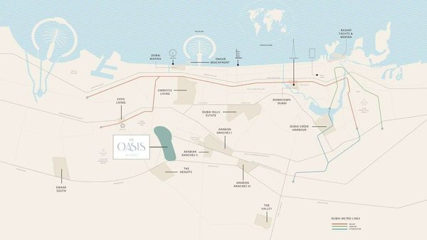 Die exklusive Gated Community The Oasis in Dubai Land bietet eine Fülle von Annehmlichkeiten, die das tägliche Leben angenehm gestalten. Ein Guard House sorgt für Sicherheit, während das Community Center Treffpunkt für Nachbarn ist. Eine malerische Lagune lädt zum Schwimmen ein und der Urban Canal bietet idyllische Spazierwege. In unmittelbarer Nähe finden Sie Schulen, Supermärkte, Ärzte und Apotheken für den täglichen Bedarf.