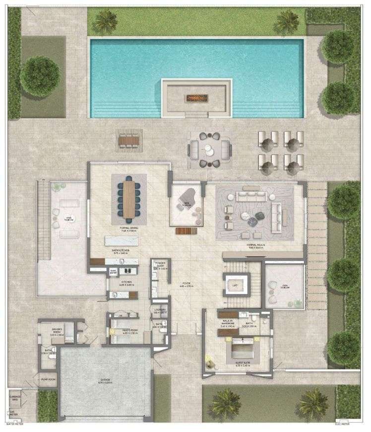 Für das Personal stehen ein Drivers Room und ein Maids Room zur Verfügung, damit auch hier für alle Annehmlichkeiten gesorgt ist. Der Garten umschließt die Villa und bietet jede Menge Platz für Outdoor-Aktivitäten. Mehrere Balkone und die großen Terrassenschiebetüren schaffen eine Verbindung von Innen- und Außenbereich.