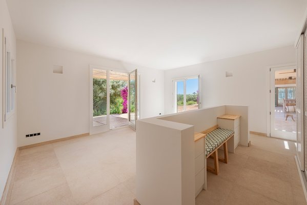 Im Obergeschoss finden Sie ein geräumiges Hauptschlafzimmer mit Ankleideraum und eigenem Bad. Außerdem gibt es zwei weitere Schlafzimmer, jedes mit eigenem Bad. Zwei dieser Schlafzimmer führen zu schönen Terrassen, von denen aus Sie eine atemberaubende Aussicht bis zum Meer genießen können.