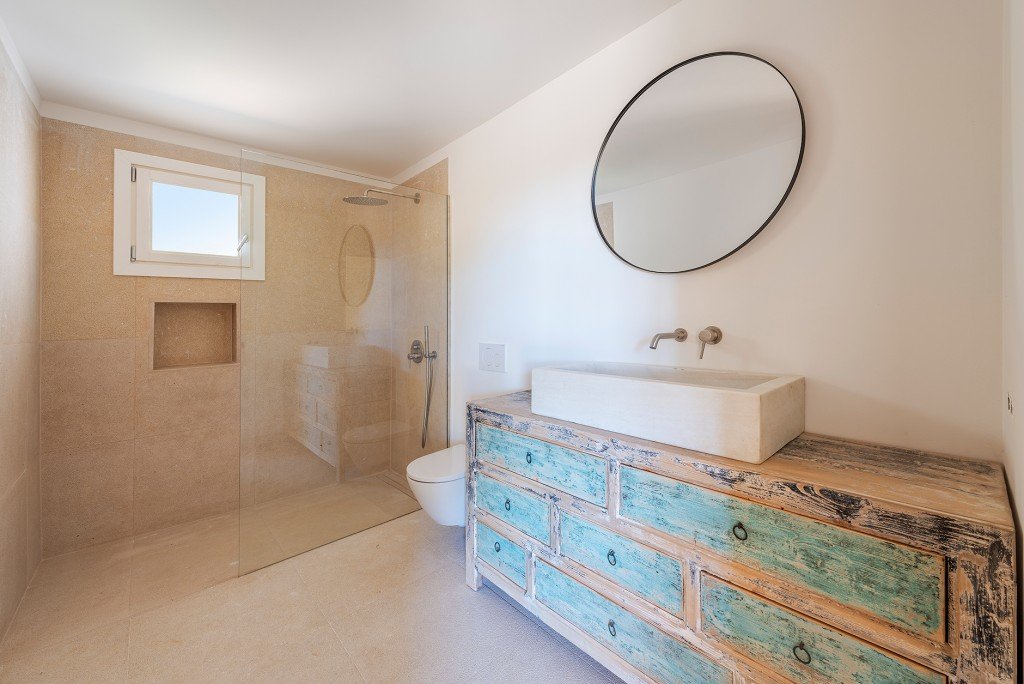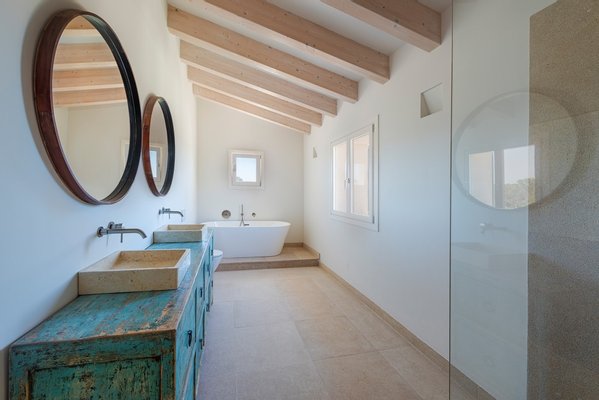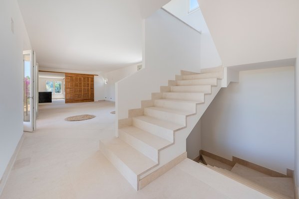 Im Obergeschoss finden Sie ein geräumiges Hauptschlafzimmer mit Ankleideraum und eigenem Bad. Außerdem gibt es zwei weitere Schlafzimmer, jedes mit eigenem Bad. Zwei dieser Schlafzimmer führen zu schönen Terrassen, von denen aus Sie eine atemberaubende Aussicht bis zum Meer genießen können.
