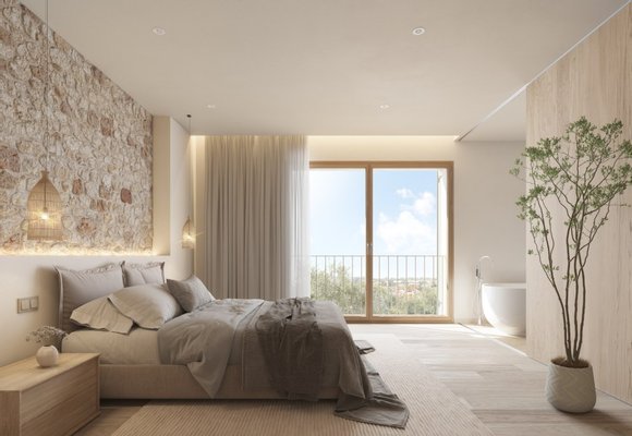 Dieses exquisite Eckreihenhaus, Teil einer exklusiven Anlage mit drei Residenzen im Herzen von Santanyí, verkörpert den Charme einer traditionellen Finca und bietet gleichzeitig höchste moderne Standards. Die Fertigstellung ist für Anfang 2026 geplant. Das Anwesen bietet eine nach Süden ausgerichtete Lage mit bezaubernder Aussicht auf die Altstadt. Das durchdachte Design mit Naturstein und Holzböden verbindet Eleganz und Komfort nahtlos und schafft ein raffiniertes und dennoch einladendes Ambiente.