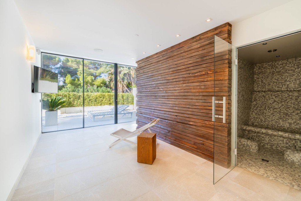 Im Erdgeschoss befinden sich zwei große Schlafzimmer-Suiten, während sich die restlichen Schlafzimmer im Untergeschoss befinden, zusammen mit der Bodega und einem Wellness-Center mit Sauna und Dampfbad.