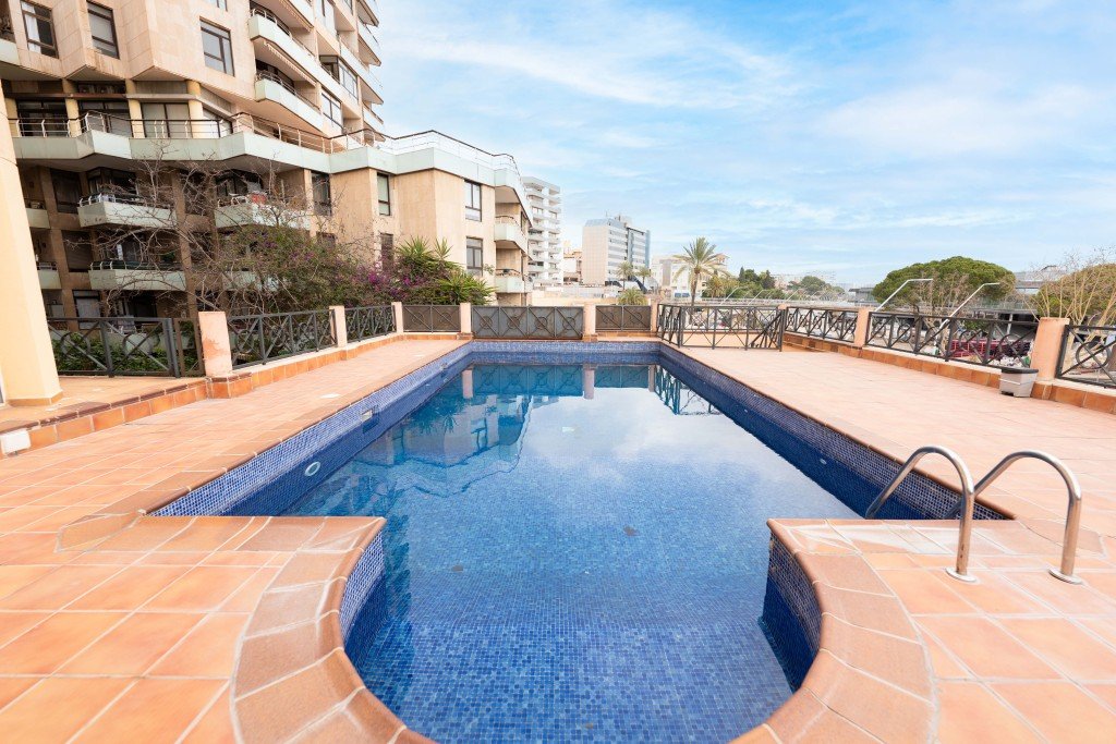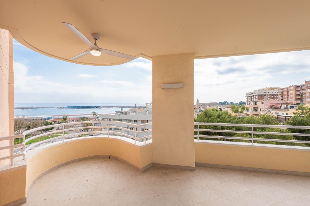 Diese atemberaubende, sonnendurchflutete Wohnung mit atemberaubendem Meerblick steht zum Verkauf und befindet sich direkt vor dem Palma Nautical Club in einer gepflegten Anlage mit einem Gemeinschaftspool.