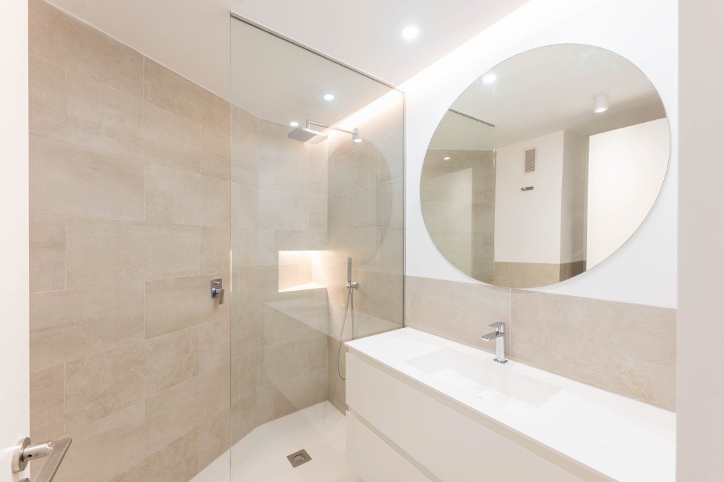 Außerdem gibt es eine Waschküche, drei Doppelschlafzimmer mit großen Einbauschränken, von denen zwei auf eine zusätzliche Terrasse führen, und zwei Badezimmer (eines davon en suite).