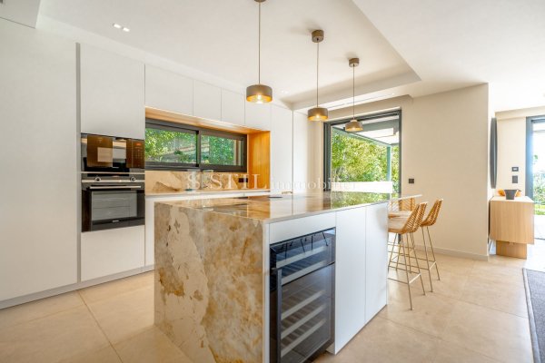 Sainte-Maxime Villa zu verkaufen. In der beliebten Gegend Sémaphore, in der Nähe des Stadtzentrums, befindet sich eine hervorragende neue Villa im Bau, die aus Wasser / Luft ausverkauft ist). Mit einem herrlichen Blick auf das Meer bietet es: