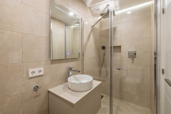 Die kürzlich renovierte Wohnung besticht durch klare Linien, eine geschmackvolle Einrichtung und große doppelt verglaste Fenster, die viel natürliches Licht hereinlassen.