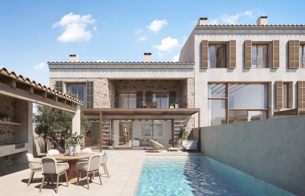 Dieses moderne Stadthaus, das Teil einer exklusiven Anlage mit drei Wohnhäusern im Herzen von Santanyí ist, verkörpert den Charme einer traditionellen Finca und bietet gleichzeitig höchste moderne Standards. Die Fertigstellung ist für Anfang 2026 geplant. Das Anwesen befindet sich in Südlage und bietet einen bezaubernden Blick auf die Altstadt. Durchdacht gestaltet mit Naturstein- und Holzböden verbindet es Eleganz und Komfort nahtlos miteinander und schafft ein raffiniertes und doch einladendes Ambiente.