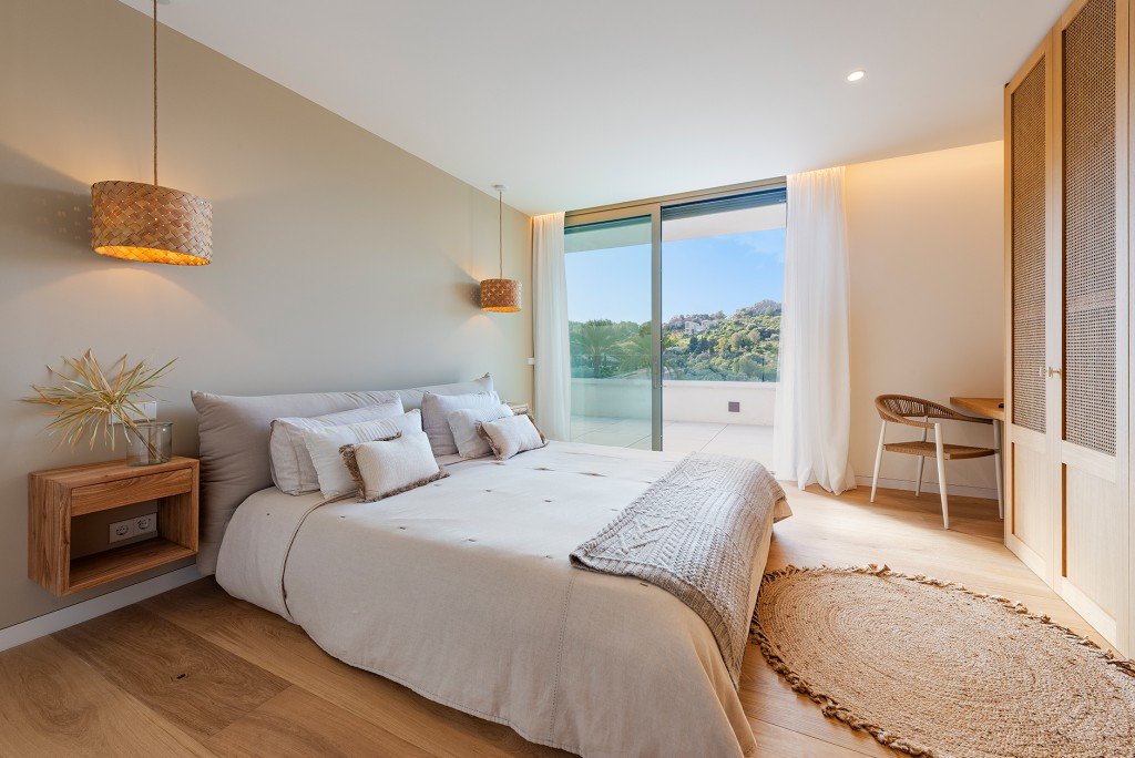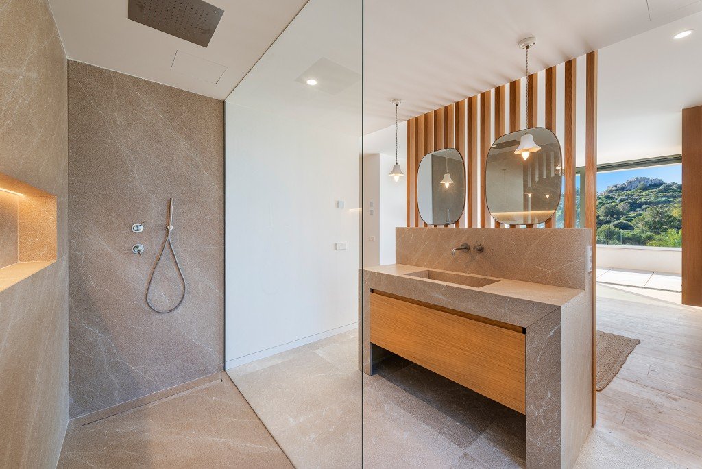 Über den Aufzug oder die Treppe gelangen Sie in die obere Etage, wo vier geräumige Schlafzimmer auf Sie warten, darunter eine luxuriöse Master-Suite mit Ankleideraum. Jedes Schlafzimmer ist mit einem eigenen Badezimmer ausgestattet, das wunderschön mit Stein oder Marmor verziert ist und über beheizte elektrische Handtuchhalter, Einbauschränke und direkten Zugang zu einer großen Terrasse verfügt.