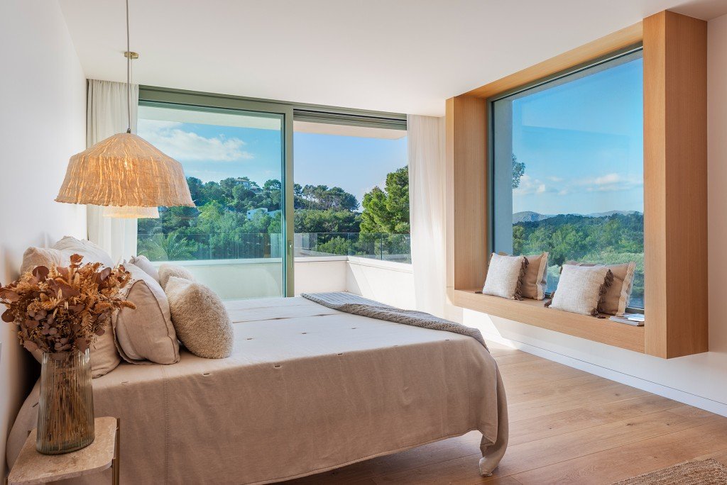 Diese atemberaubende Villa mit 4 Schlafzimmern steht jetzt in Bonaire, einem begehrten und ruhigen Viertel in Alcudia, zum Verkauf. Das Anwesen wurde 2020 von einem gefeierten Architekten fertiggestellt und verfügt über hochwertige Materialien. Es befindet sich auf einem erhöhten Grundstück von ca. 1.200 m² und bietet einen atemberaubenden Blick auf das Meer und die Berge.