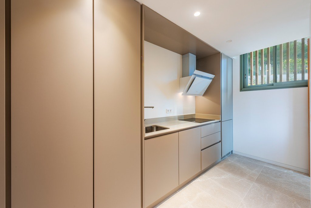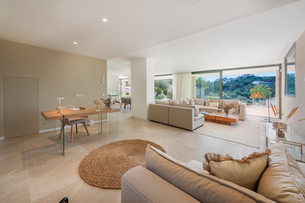Im Erdgeschoss finden Sie einen wunderschön gestalteten offenen Bereich mit einer modernen Küche mit angrenzender Vorbereitungsküche, einem Essbereich und einem geräumigen Wohnzimmer, die alle direkten Zugang zur Terrasse bieten. Auf dieser Ebene befindet sich auch ein Schlafzimmer, das derzeit als Büro genutzt wird.