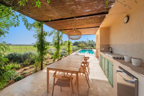 Dieses exquisite, neu erbaute mallorquinische Landhaus wird im charmanten Sa Ràpita in Campos zum Verkauf angeboten. Das Haus wurde erst 2024 fertiggestellt und besticht durch sein mediterranes Design und einen atemberaubenden, unverbaubaren Blick