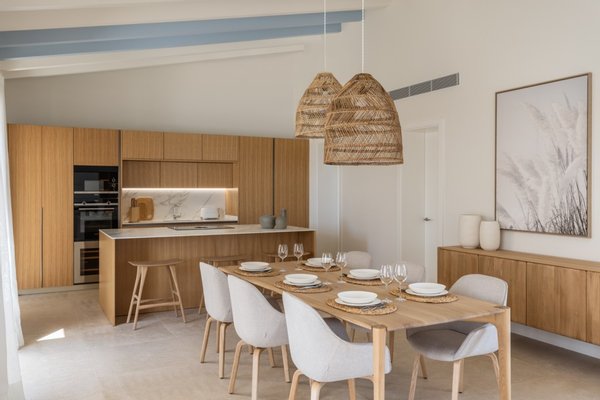 Es gibt ein geräumiges Wohnzimmer, das sich perfekt für die Unterhaltung eignet, eine voll ausgestattete Küche und einen hellen Essbereich. Moderne Annehmlichkeiten wie Fußbodenheizung und zentrale Klimaanlage sorgen für ganzjährigen Komfort.