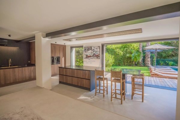 Ideal gelegen in einer ruhigen Umgebung, nur einen kurzen Spaziergang vom Meer entfernt, wurde diese neue Villa wunderschön fertiggestellt: ein Wohnzimmer mit einer schönen offenen Küche, die sich über große Schiebetüren direkt auf den Außenbereich