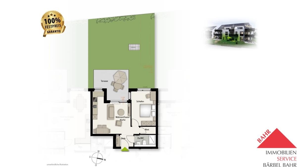 - Schöne Terrasse mit eigenem Garten (ca. 67m²)