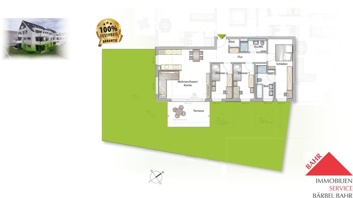 Diese moderne 4-Zimmer-Erdgeschosswohnung mit ca. 103 m² Wohnfläche und einem großzügigen Gartenanteil von ca. 227 m² bietet jungen Familien und Paaren den idealen Lebensraum. Hier genießen Sie die perfekte Kombination aus Komfort, Flexibilität und Wohnqualität – drinnen wie draußen.