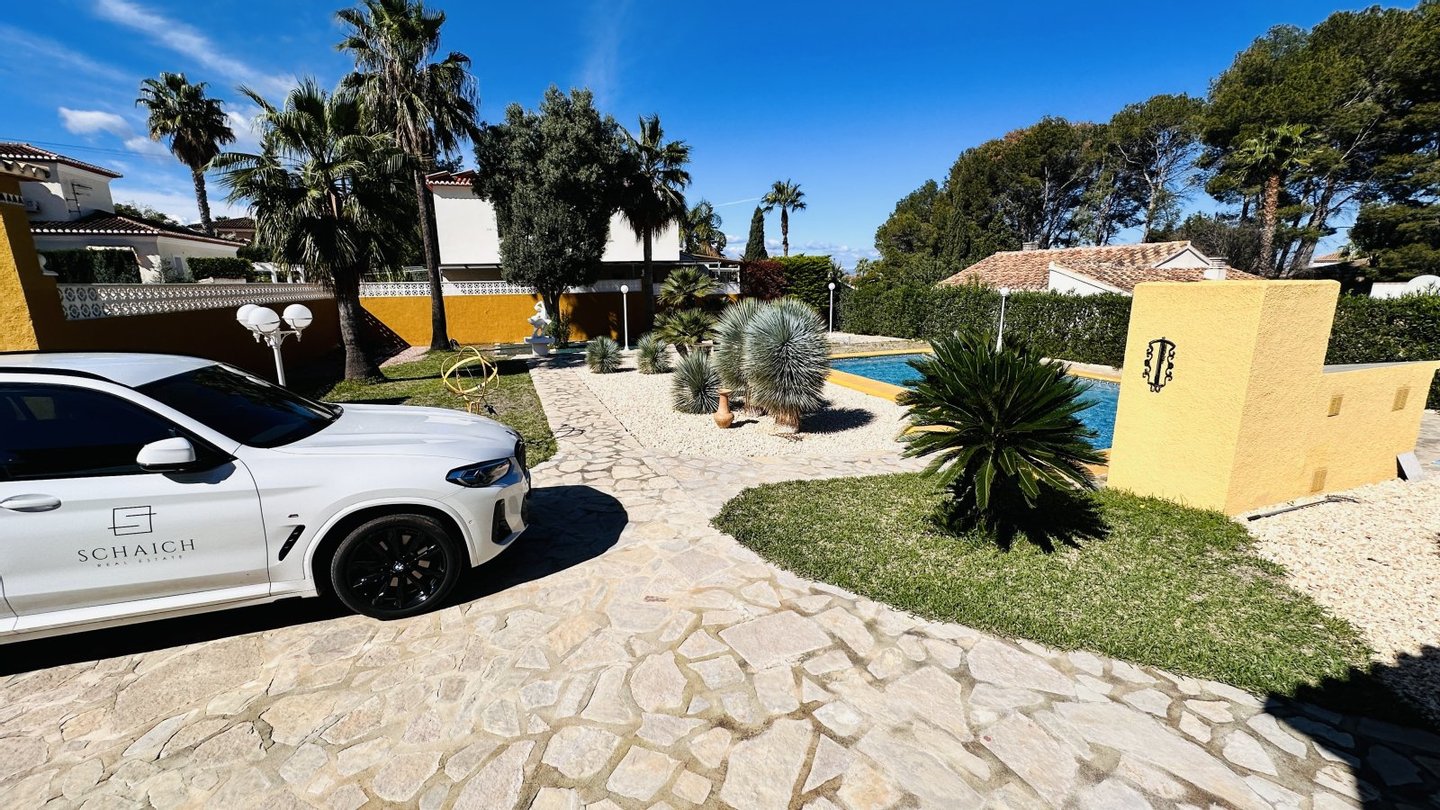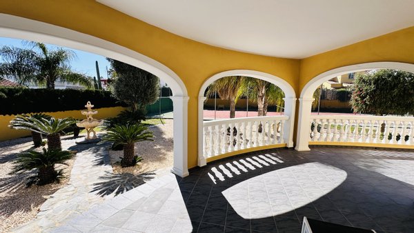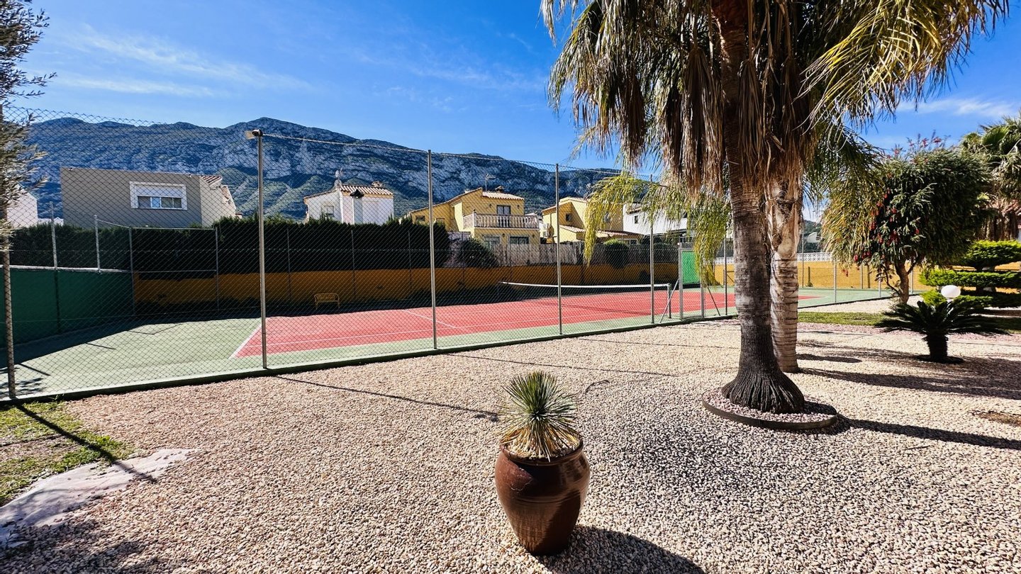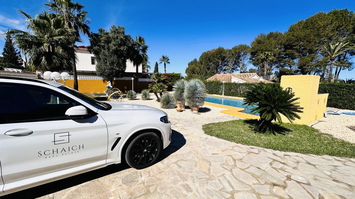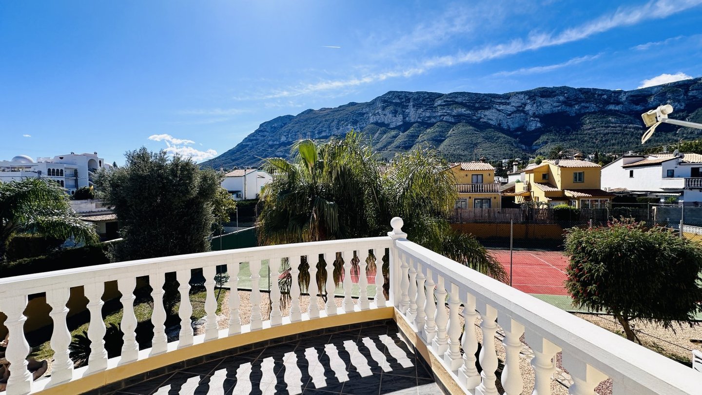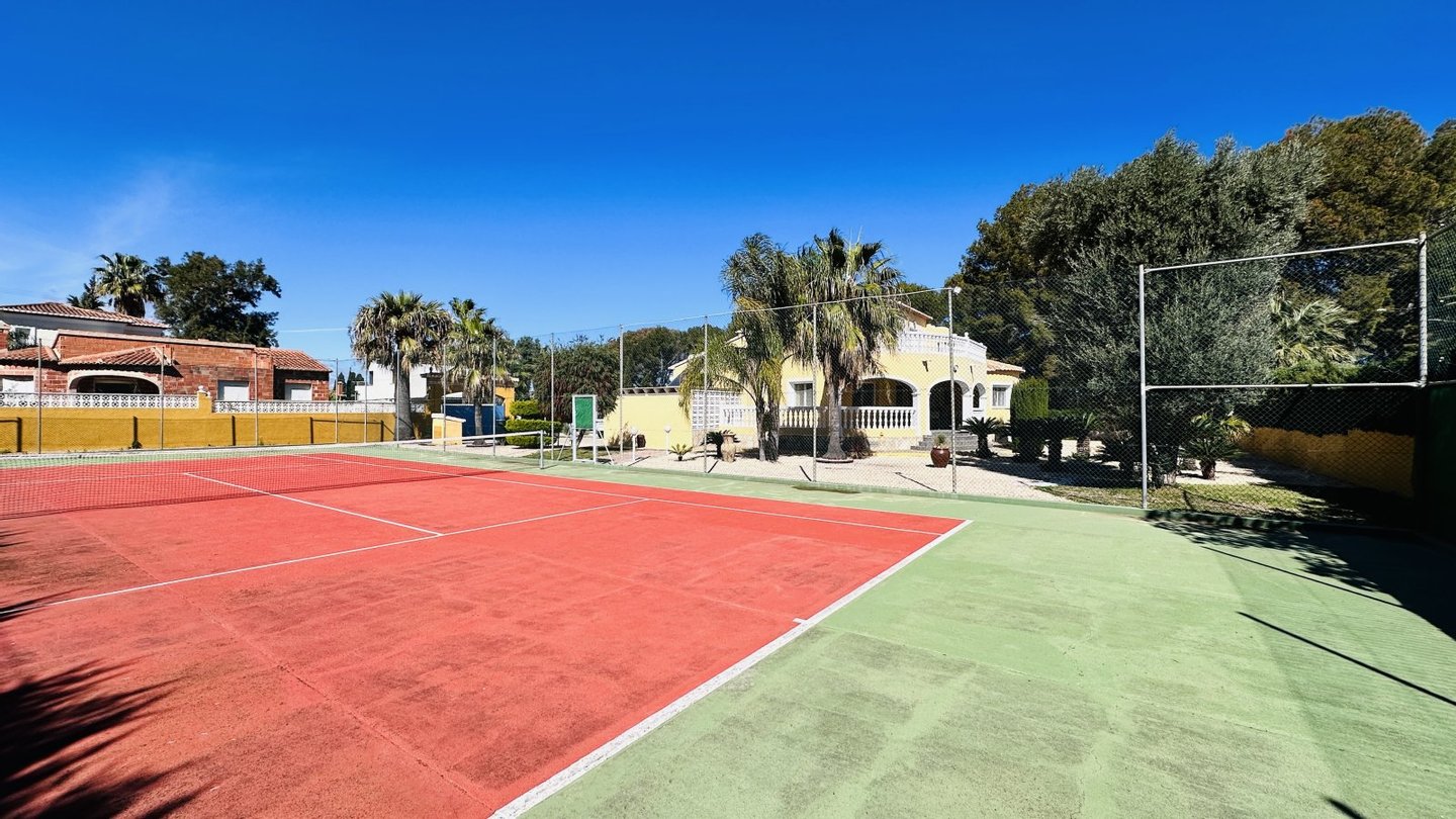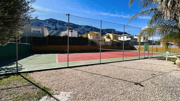 Eine Gelegenheit mit vielen Nutzungsmöglichkeiten. Wenn Sie stadtnahe, ruhig, großzügig und sonnig wohnen möchten, dann müssen Sie sich diese Immobilie unbedingt etwas genauer anschauen. Das große Grundstück mit zahlreichen Nutzungsoptionen bietet Ihnen Freiraum und Privatsphäre gleichermaßen. Auf dem Grundstück befindet sich ein sehr gepflegter Tennisplatz, ein großer Pool mit 5 x 10 Metern und einen Brunnen mit Trinkwasserqualität. Das Haus wurde nach deutschen Maßstäben mit Garage erstellt und bietet eine sehr umfangreiche Ausstattung. Insgesamt bietet die Villa 4 große Schlafzimmer, 3 Bäder, 4 WC, 1 Einbauküche, 1 Technik-Vorratsraum sowie 1 großes Wohnzimmer, eine große überdachte Terrasse und eine große nicht überdachte Terrasse mit Blick auf den Montgo. Der große Tennisplatz kann als Tennisplatz genutzt werden oder auch ggf. durch eine Erweiterung der bestehenden Bebauung genutzt werden, z. B. Gästehaus, Garagen, BBQ etc. Das Anwesen verfügt über ein super Preis / Leistungsverhältnis. Es liegt ein aktuelles Wertgutachten in Höhe von kapp 1,2 Mio. vor. Deshalb handelt es sich bei dem Kaufpreis um einen Festpreis.