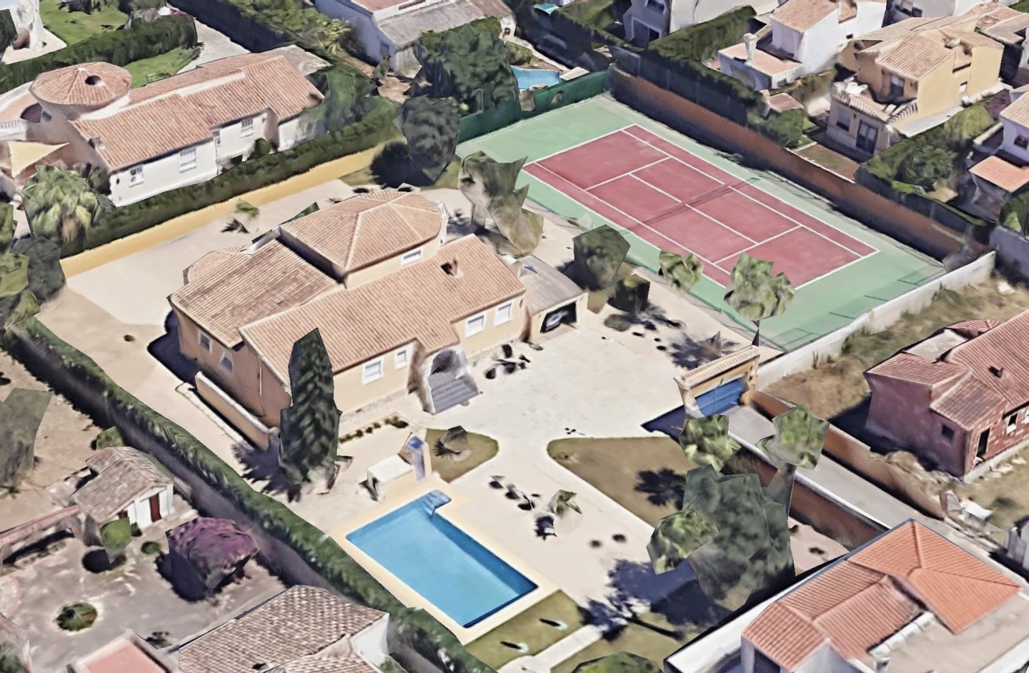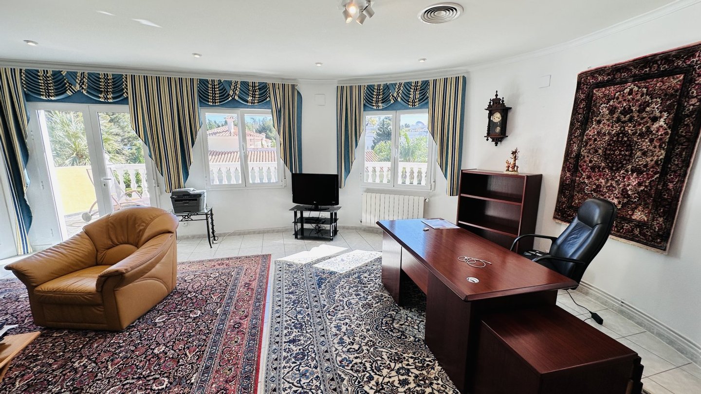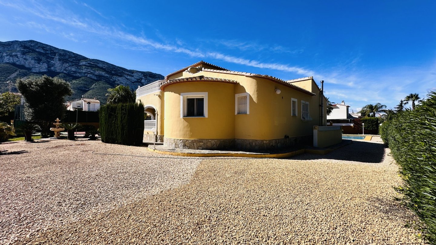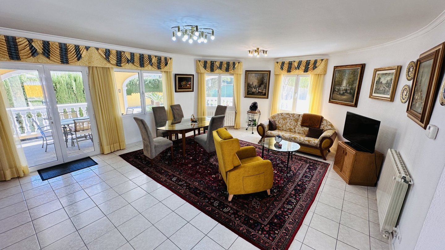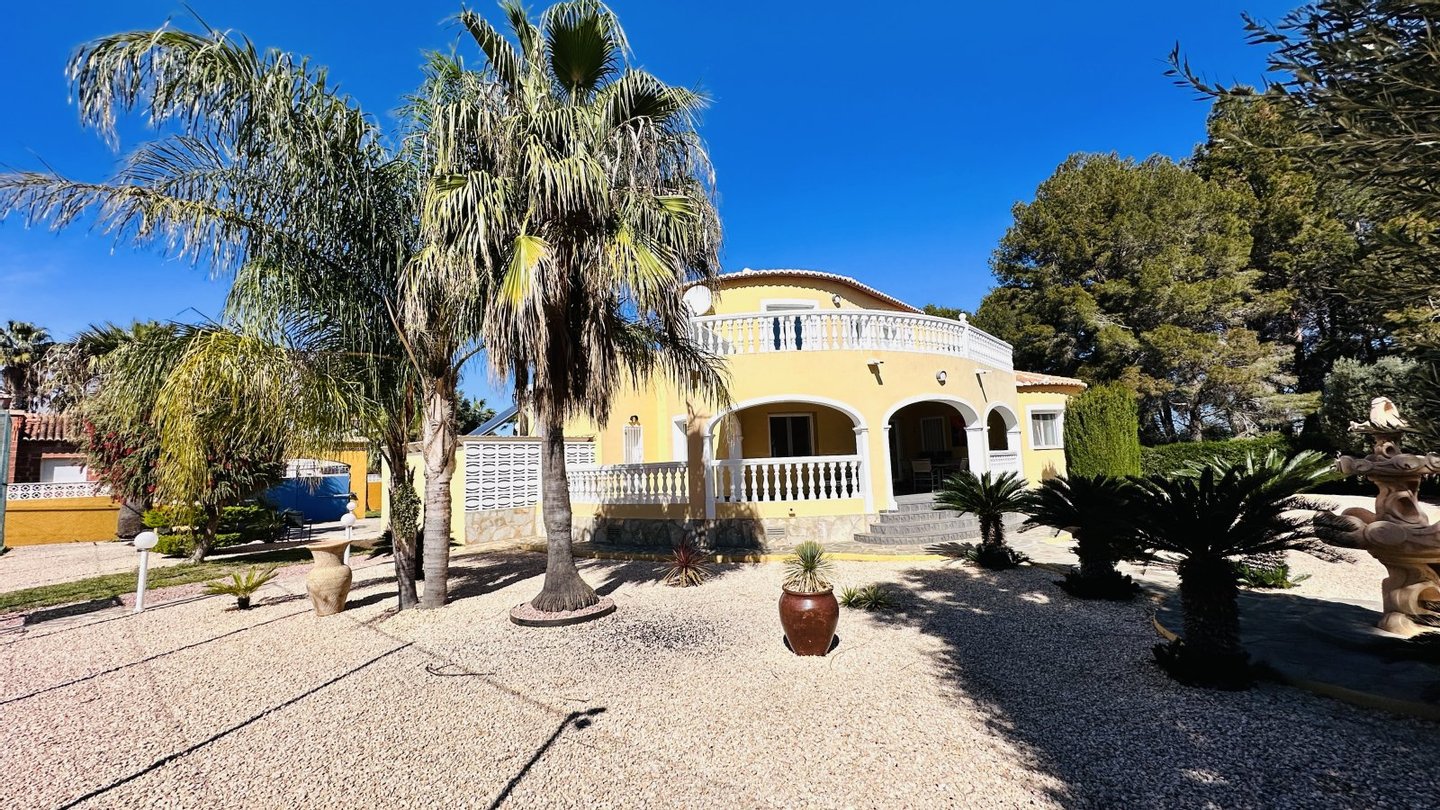Eine Gelegenheit mit vielen Nutzungsmöglichkeiten. Wenn Sie stadtnahe, ruhig, großzügig und sonnig wohnen möchten, dann müssen Sie sich diese Immobilie unbedingt etwas genauer anschauen. Das große Grundstück mit zahlreichen Nutzungsoptionen bietet Ihnen Freiraum und Privatsphäre gleichermaßen. Auf dem Grundstück befindet sich ein sehr gepflegter Tennisplatz, ein großer Pool mit 5 x 10 Metern und einen Brunnen mit Trinkwasserqualität. Das Haus wurde nach deutschen Maßstäben mit Garage erstellt und bietet eine sehr umfangreiche Ausstattung. Insgesamt bietet die Villa 4 große Schlafzimmer, 3 Bäder, 4 WC, 1 Einbauküche, 1 Technik-Vorratsraum sowie 1 großes Wohnzimmer, eine große überdachte Terrasse und eine große nicht überdachte Terrasse mit Blick auf den Montgo. Der große Tennisplatz kann als Tennisplatz genutzt werden oder auch ggf. durch eine Erweiterung der bestehenden Bebauung genutzt werden, z. B. Gästehaus, Garagen, BBQ etc. Das Anwesen verfügt über ein super Preis / Leistungsverhältnis. Es liegt ein aktuelles Wertgutachten in Höhe von kapp 1,2 Mio. vor. Deshalb handelt es sich bei dem Kaufpreis um einen Festpreis.