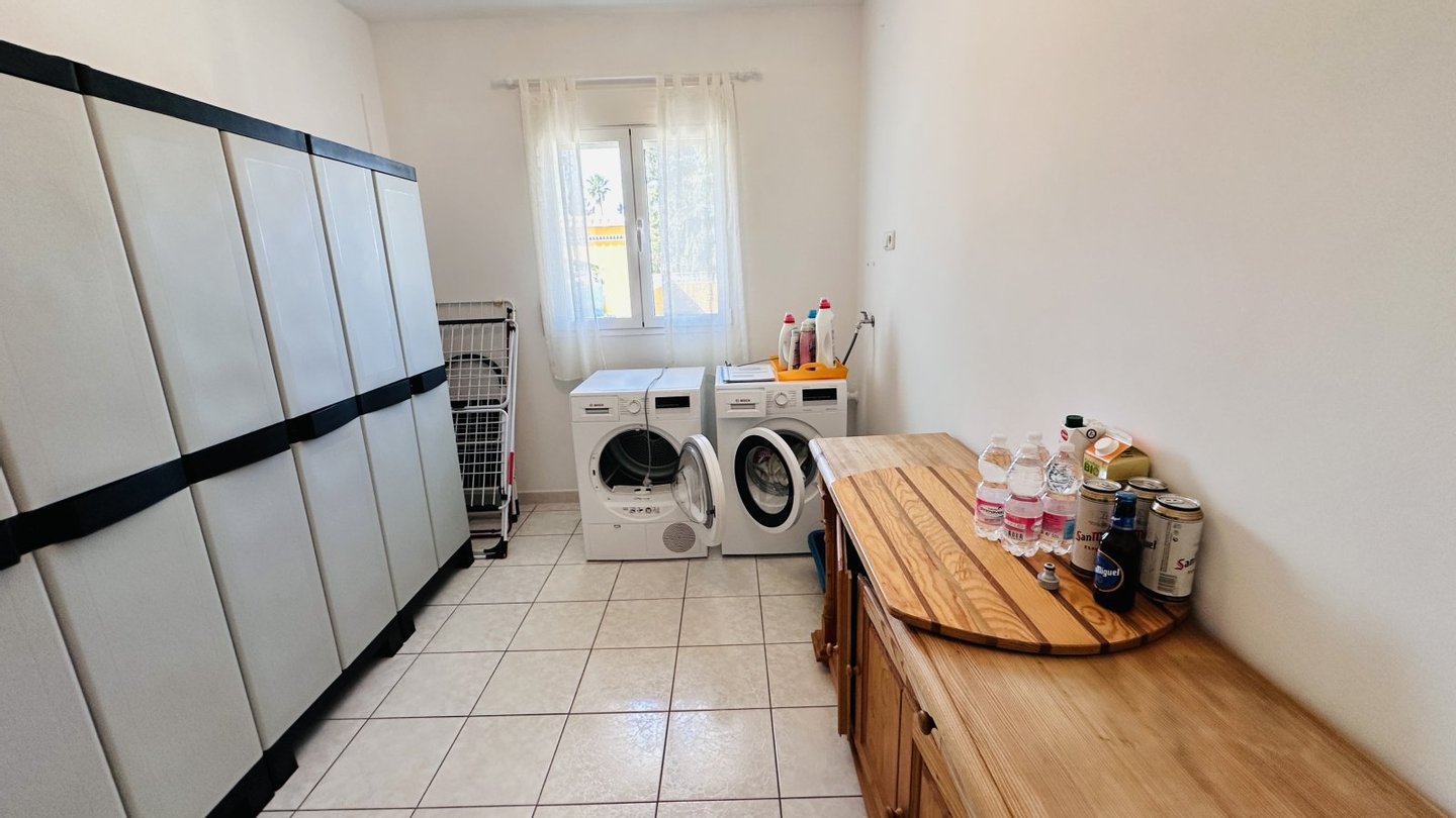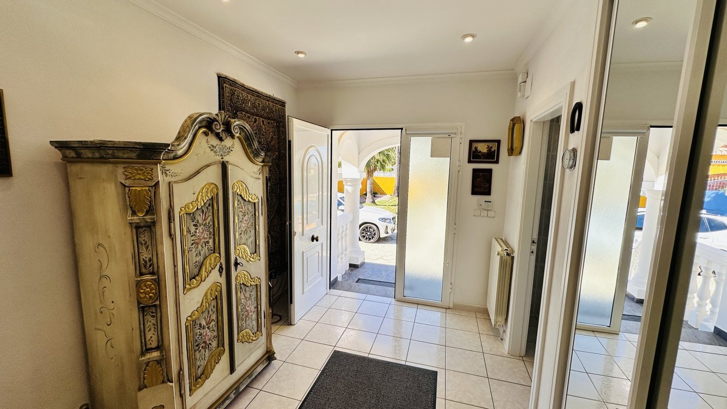 Das Haus verfügt über eine sehr gute Ausstattung. Alle Zimmer sind groß und hell. Massivbauweise, Fliesenböden, Aluminium Isolierglasfenster mit Rollläden, Alarmanlage, Öl-Zentralheizung, Klimaanlage zentral in der Decke verbaut, Brunnen mit ...mehr lesen