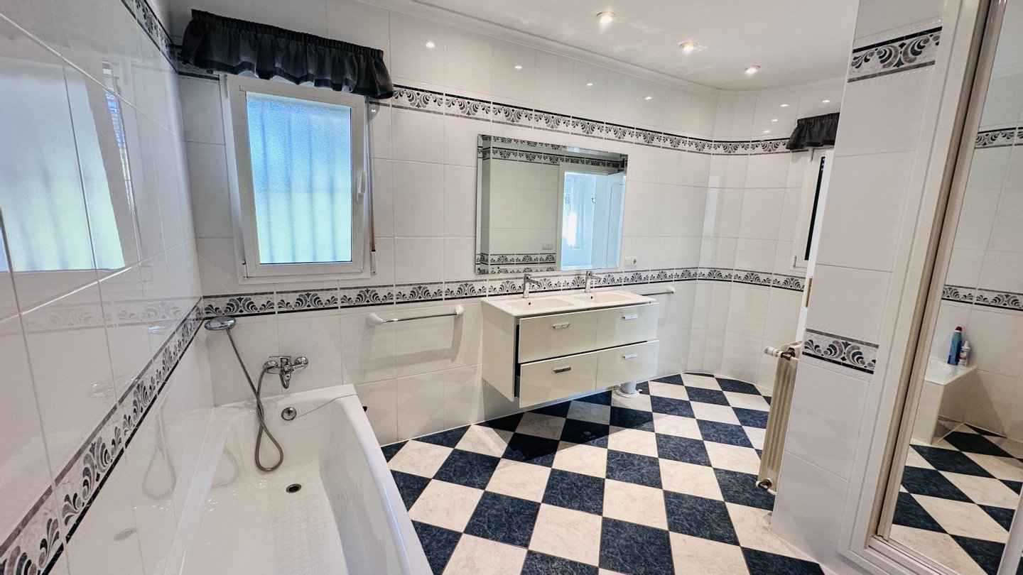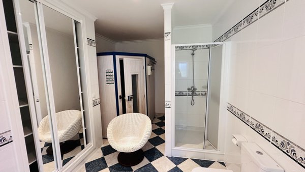 Das Haus verfügt über eine sehr gute Ausstattung. Alle Zimmer sind groß und hell. Massivbauweise, Fliesenböden, Aluminium Isolierglasfenster mit Rollläden, Alarmanlage, Öl-Zentralheizung, Klimaanlage zentral in der Decke verbaut, Brunnen mit Trinkwasserqualität, Tennisplatz mit Standardmaßen, großer Pool 5 x 10 Meter, Außendusche, Wasserentkalkungsanlage, neue Filtertechnik für den Pool, Glasfaseranschluss möglich, Sauna, elektrisches Einfahrtstor, Keller, Luftkammer unter der Bodenplatte mit Revisionsöffnung, Garage, Technikraum für Vorräte und Waschmaschine, Kanalanschluss etc.