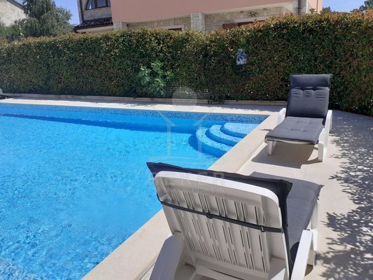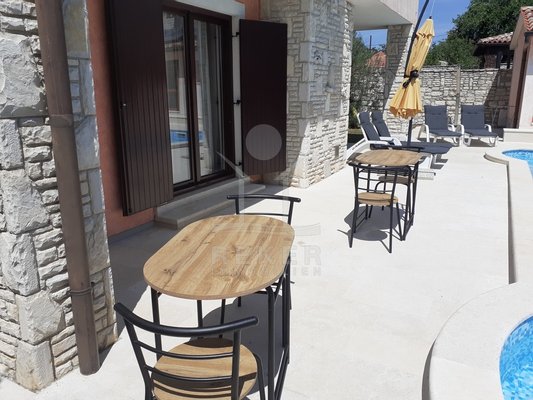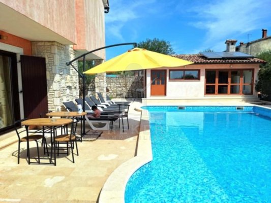 Entdecken Sie dieses schönes Einfamilienhaus in der malerischen Region Barban, das mediterranes Flair mit modernen Annehmlichkeiten verbindet. Diese charmante Immobilie bietet nicht nur 4 geräumige Schlafzimmer, sondern auch einen großzügigen Salzwasser-Pool und ein einladendes Poolhaus – perfekt für entspannte Tage unter der istrischen Sonne. Die bereits etablierte Vermietung an Touristen stellt eine großartige Einkommensquelle dar und macht dieses Anwesen zu einer hervorragenden Investitionsmöglichkeit.