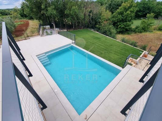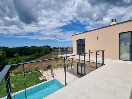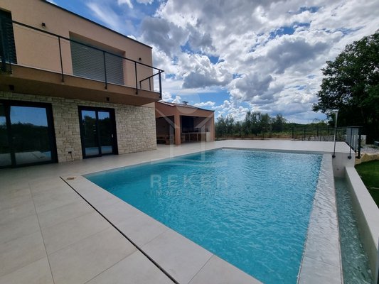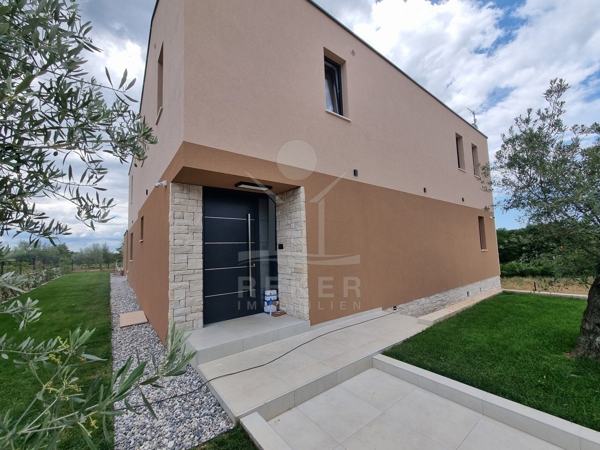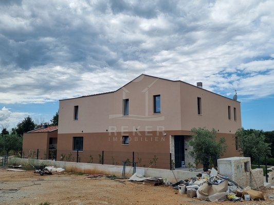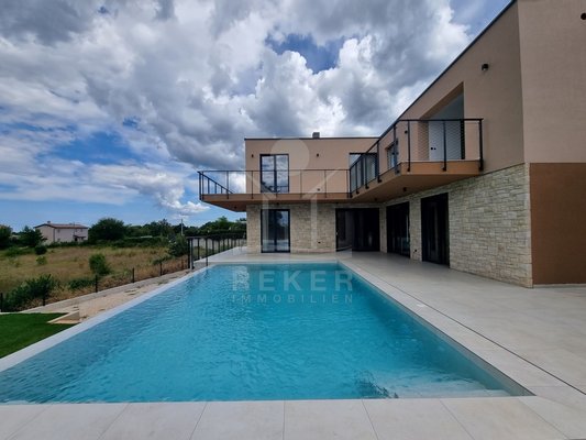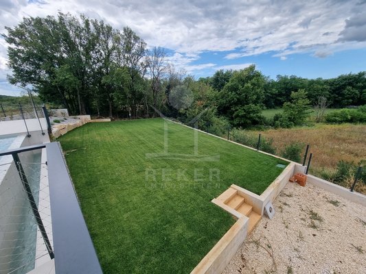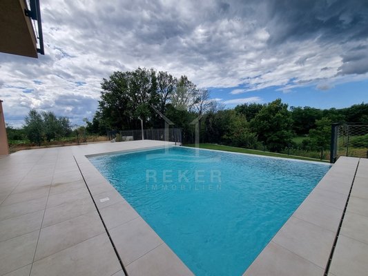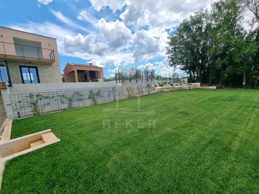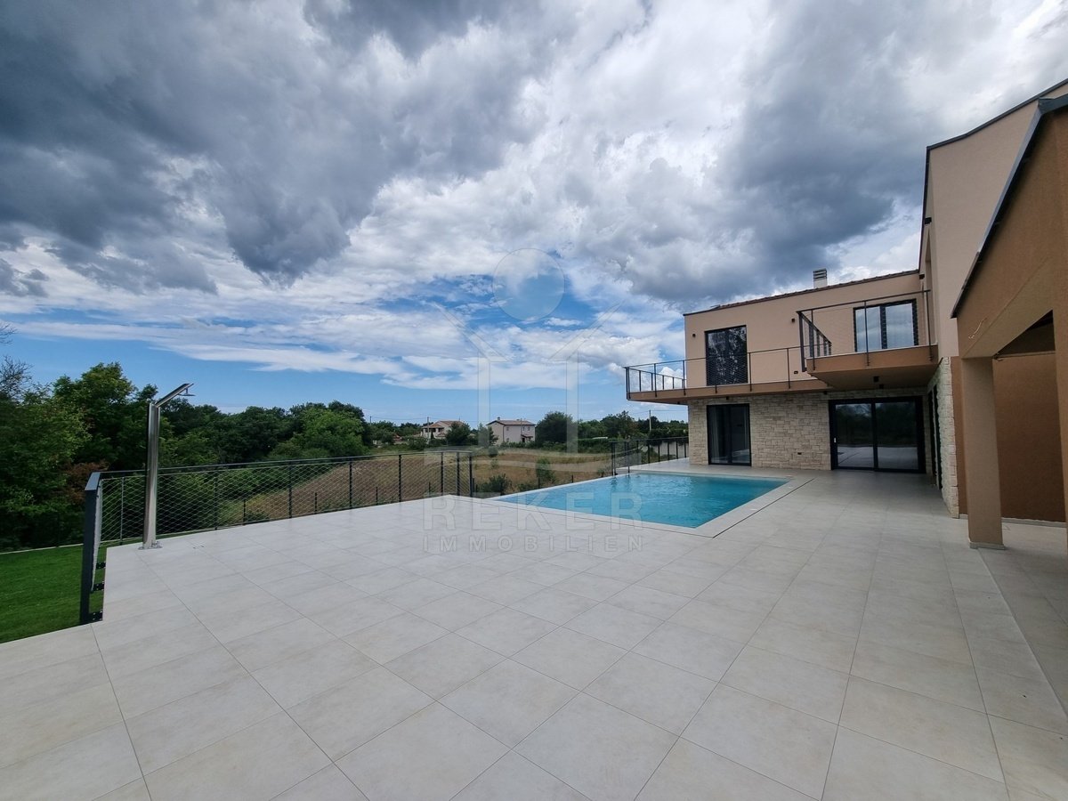 Am Rande eines kleinen istrischen Dorfes – nur wenige Fahrminuten vom Ort Višnjan entfernt – erwartet Sie diese moderne Villa mit viel Ruhe und noch mehr Platz. Die Umgebung ist grün, ruhig und absolut privat. Ideal für alle, die dem Lärm entkommen wollen, aber nicht auf Komfort verzichten möchten. Bis zum Ortskern von Višnjan sind es nur 7 Kilometer. Der nächste Strand liegt 20 Minuten entfernt. Direkt am Grundstück stehen mehrere Stellplätze zur Verfügung. Zusätzlich gibt es eine große Garage im Untergeschoss.