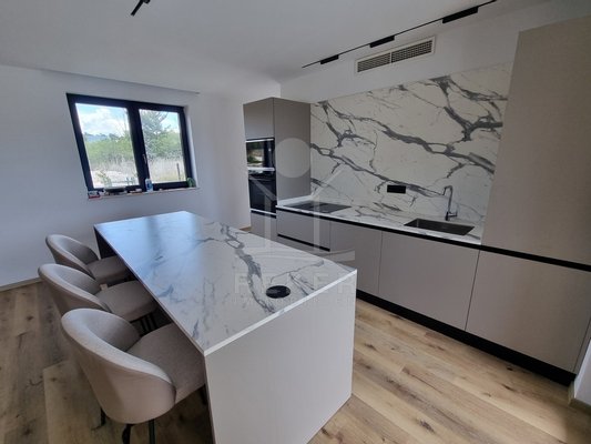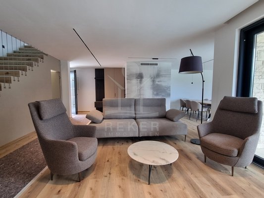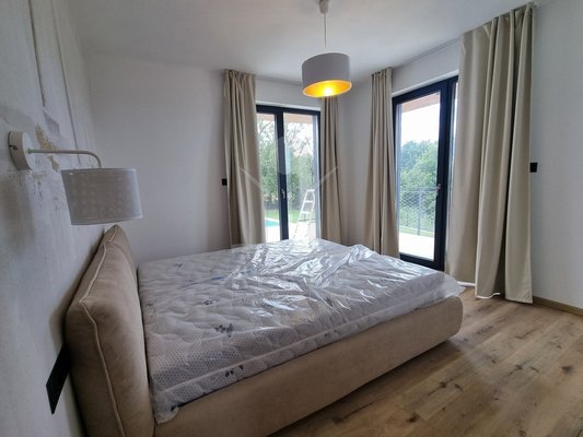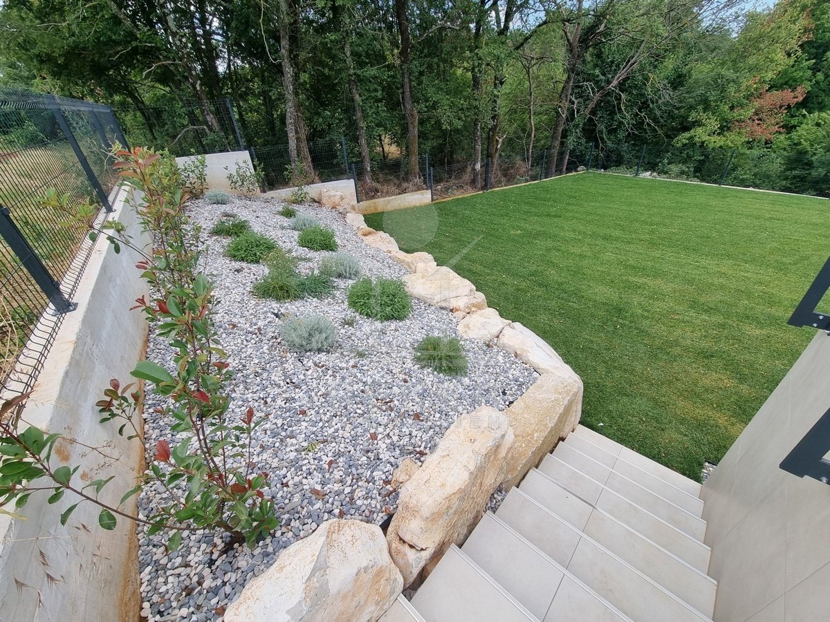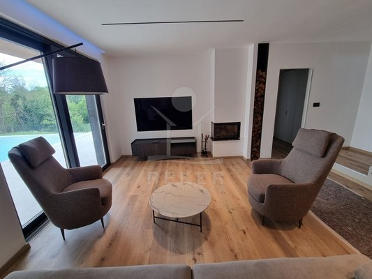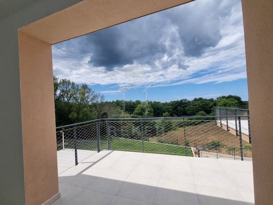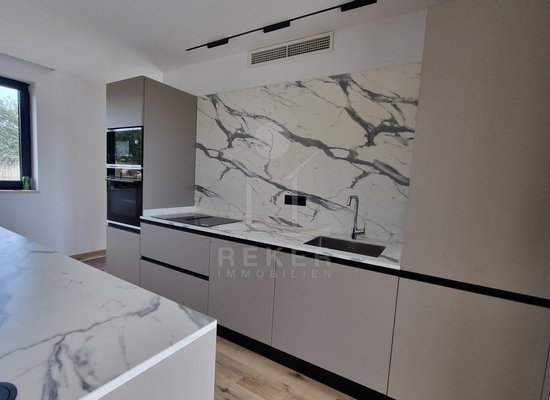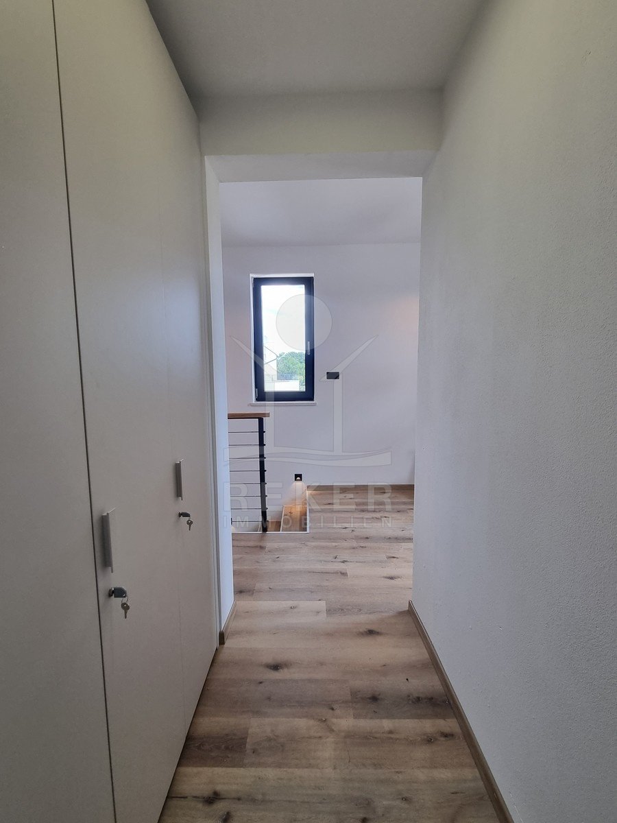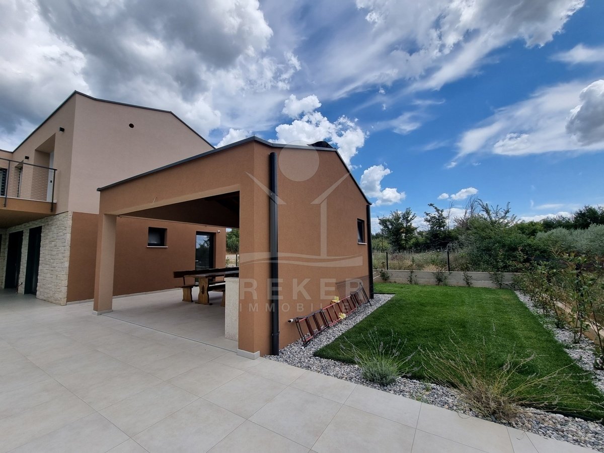 Am Rande eines kleinen istrischen Dorfes – nur wenige Fahrminuten vom Ort Višnjan entfernt – erwartet Sie diese moderne Villa mit viel Ruhe und noch mehr Platz. Die Umgebung ist grün, ruhig und absolut privat. Ideal für alle, die dem Lärm entkommen wollen, aber nicht auf Komfort verzichten möchten. Bis zum Ortskern von Višnjan sind es nur 7 Kilometer. Der nächste Strand liegt 20 Minuten entfernt. Direkt am Grundstück stehen mehrere Stellplätze zur Verfügung. Zusätzlich gibt es eine große Garage im Untergeschoss.