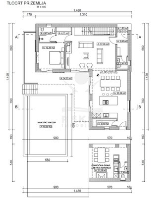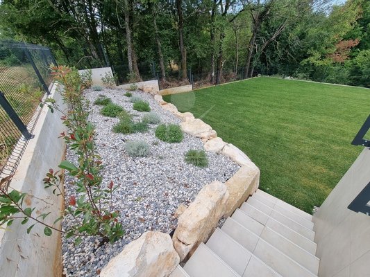 Der Garten ist rundum eingefriedet und professionell gestaltet. Naturstein, junge Pflanzen, gepflegte Rasenflächen und Split-Zonen sorgen für mediterrane Stimmung. Im Mittelpunkt steht der 40 m² große Pool mit flacher Relax-Zone. Rund um den Pool gibt es reichlich Platz zum Sonnenbaden oder Grillen. Ein echtes Highlight: die überdachte Sommerküche mit Essbereich, gemauertem Grill und zusätzlichem WC. Dieser Platz macht den Sommer draußen zum Wohnzimmer – vom Frühstück bis spät in die Nacht.