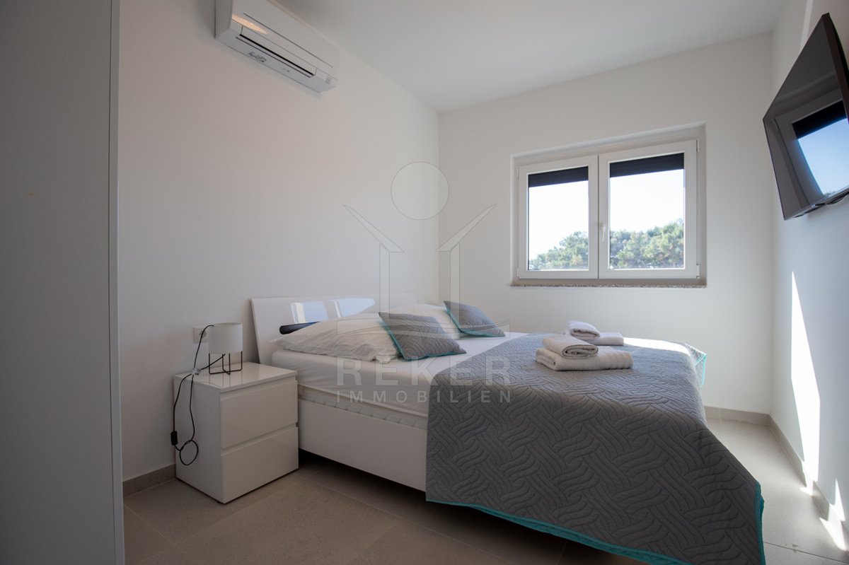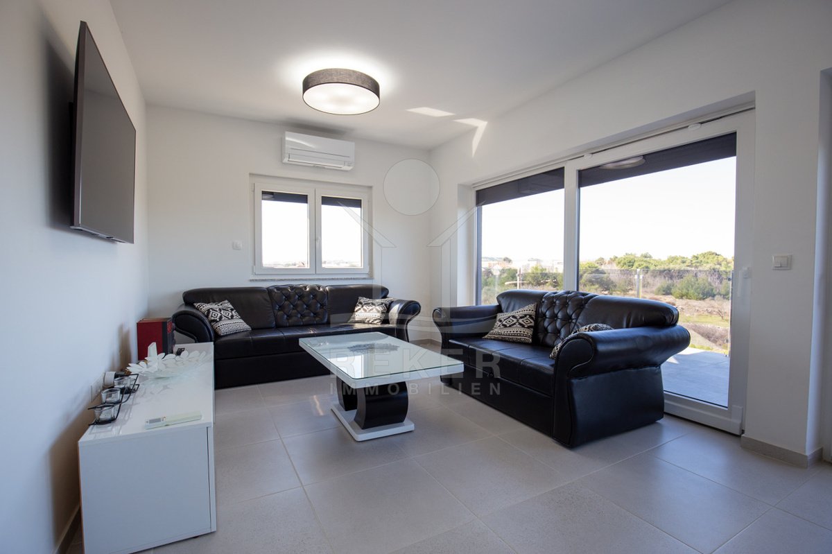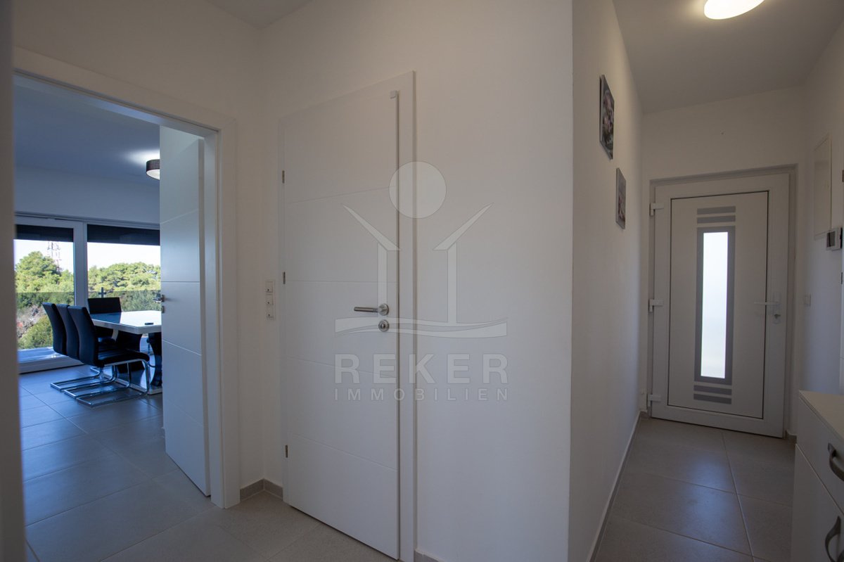 Tauchen Sie ein in das Leben der Extraklasse in dieser beeindruckenden Penthousewohnung auf der idyllischen Insel Vir. Im 2. Obergeschoss gelegen, bietet Ihnen diese exquisite Immobilie ein großzügiges Platzangebot und ein harmonisches Design, das perfekt mit der umgebenden Natur und den glitzernden Stränden der Adria harmoniert. Mit drei komfortablen Schlafzimmern ist diese Wohnung ideal für Familien oder für gesellige Zusammenkünfte mit Freunden.