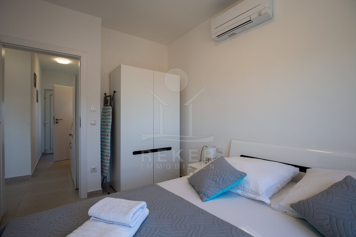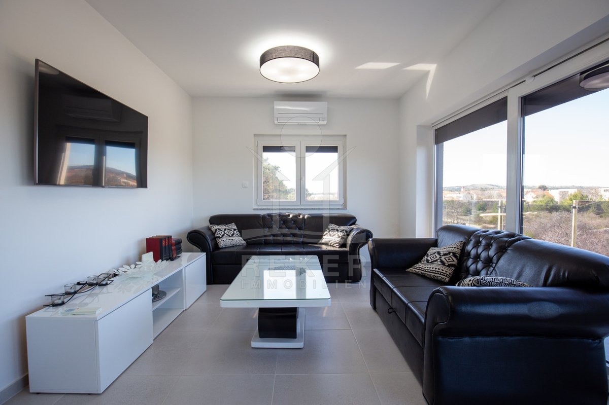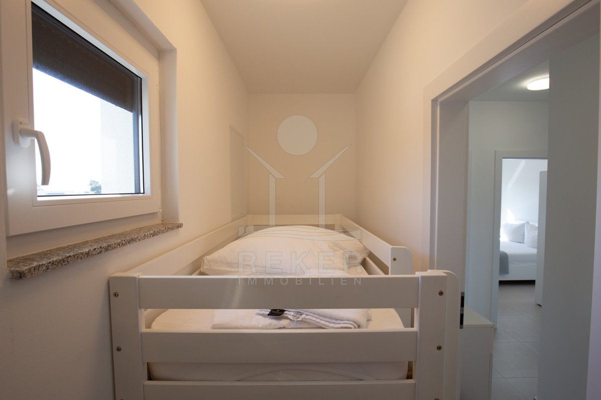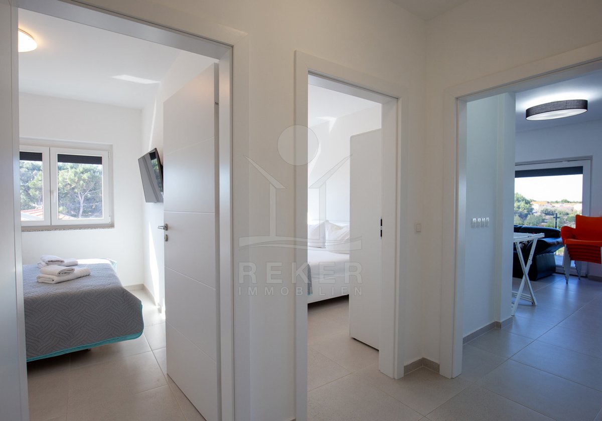 Tauchen Sie ein in das Leben der Extraklasse in dieser beeindruckenden Penthousewohnung auf der idyllischen Insel Vir. Im 2. Obergeschoss gelegen, bietet Ihnen diese exquisite Immobilie ein großzügiges Platzangebot und ein harmonisches Design, das perfekt mit der umgebenden Natur und den glitzernden Stränden der Adria harmoniert. Mit drei komfortablen Schlafzimmern ist diese Wohnung ideal für Familien oder für gesellige Zusammenkünfte mit Freunden.