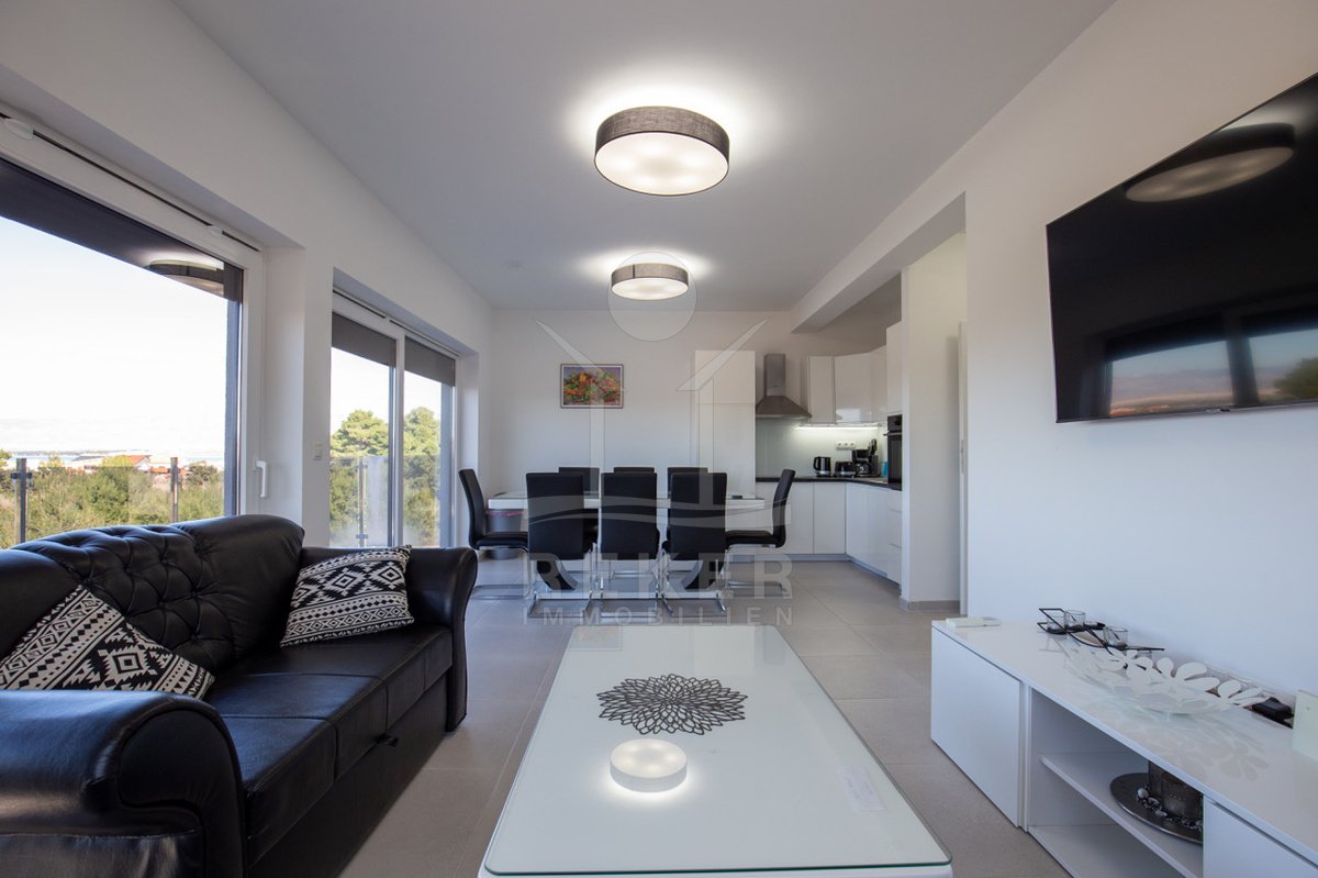 Tauchen Sie ein in das Leben der Extraklasse in dieser beeindruckenden Penthousewohnung auf der idyllischen Insel Vir. Im 2. Obergeschoss gelegen, bietet Ihnen diese exquisite Immobilie ein großzügiges Platzangebot und ein harmonisches Design, das
