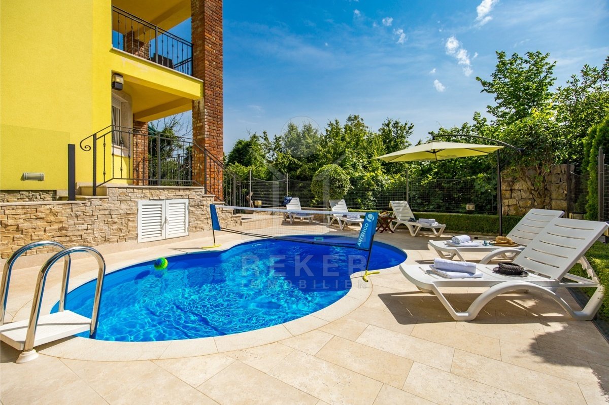 Entdecken Sie dieses außergewöhnliche Immobilienangebot in der malerischen Region Kvarner, unweit von Opatija! Diese imposante Villa in Bregi bietet nicht nur einen einladenden Pool, sondern auch zwei separate Wohnungen, die sowohl für private Rückzugsorte als auch für eine profitable Vermietung genutzt werden können. Umgeben von einem gepflegten, wunderschönen Garten, genießen Sie hier die perfekte Kombination aus Entspannung und Freizeitgestaltung. Die vielfältigen Möglichkeiten, die dieses bereits etablierte Vermietungsgeschäft bietet, eröffnen Ihnen nicht nur ein ideales Zuhause, sondern auch die Chance, ein nachhaltiges Einkommen zu generieren.