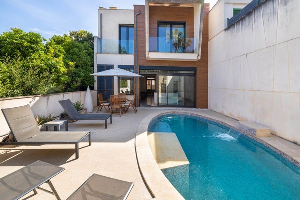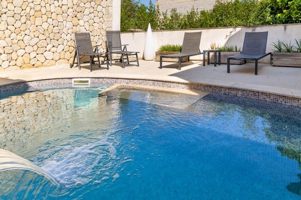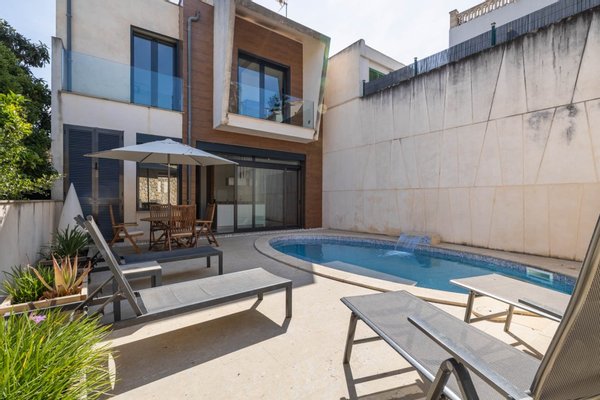 Der Außenbereich umfasst einen Garten und einen privaten Pool (7 x 3,5 m), der den perfekten Raum zum Entspannen und für gesellige Stunden bietet.