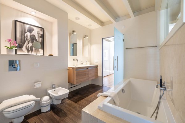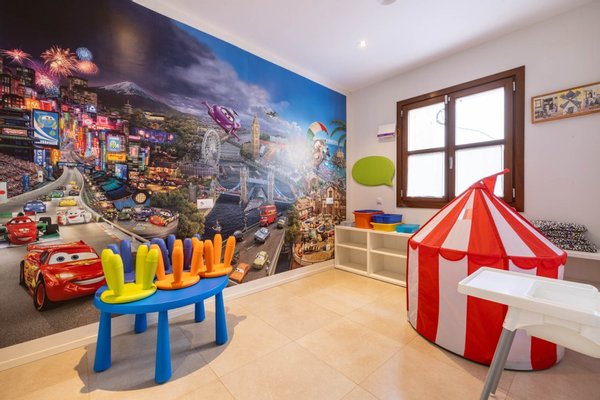 Im ersten Stock gibt es einen Fernsehraum und drei Schlafzimmer mit zwei Einzelbetten, darunter ein Hauptschlafzimmer mit zwei Balkonen. Es gibt auch ein Gemeinschaftsbad, mit Anschlüssen für ein zusätzliches Badezimmer in der Mastersuite. Außerdem gibt es ein großes Familienzimmer, das sich ideal zum Entspannen oder Spielen eignet.