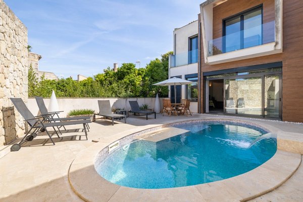 Der Außenbereich umfasst einen Garten und einen privaten Pool (7 x 3,5 m), der den perfekten Raum zum Entspannen und für gesellige Stunden bietet.