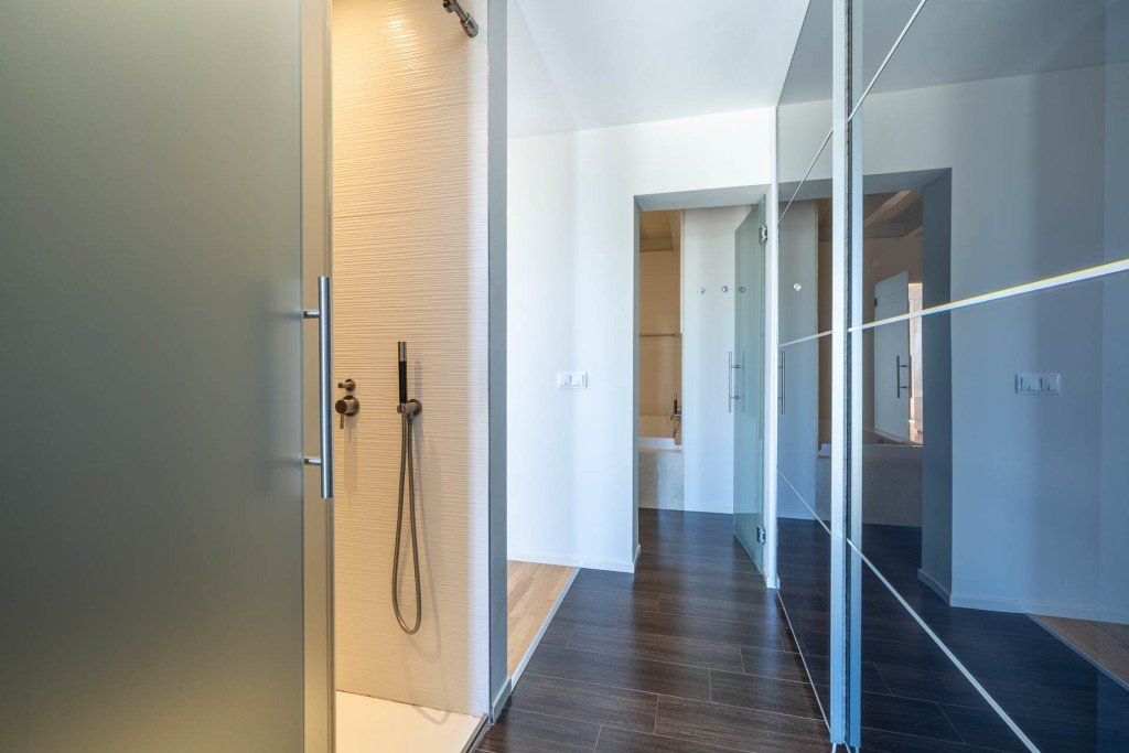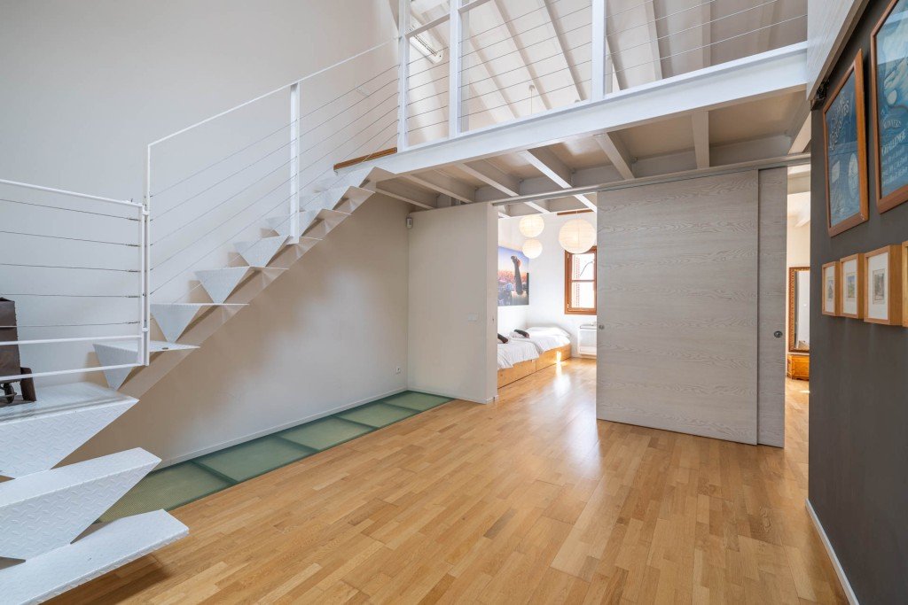 Im Erdgeschoss befinden sich ein Wohn- und Essbereich, eine offene Küche, ein Schlafzimmer mit zwei Einzelbetten und ein Einzelzimmer mit eigenem Bad.