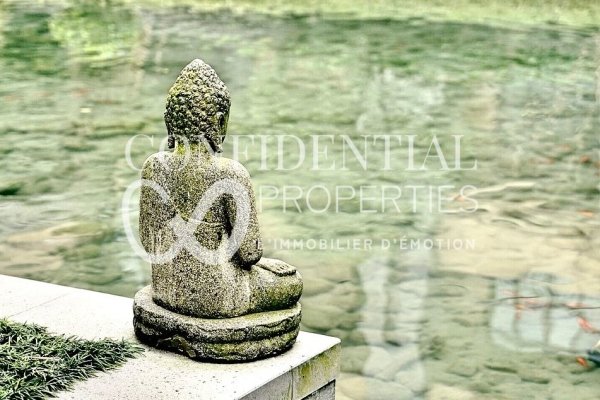 Diese außergewöhnliche zeitgenössische Villa, eingebettet in üppiges Grün, entfaltet ihre eleganten und raffinierten Linien auf weitläufigen Terrassen, einem intimen Innenhof, einem glitzernden Swimmingpool und einem Teich, in dem sich die jahrhundertealten Olivenbäume und majestätischen Palmen widerspiegeln, die sie umgeben. Es bietet einen erhabenen Panoramablick auf das Meer und verkörpert einen Lebensstil von seltener Intensität.